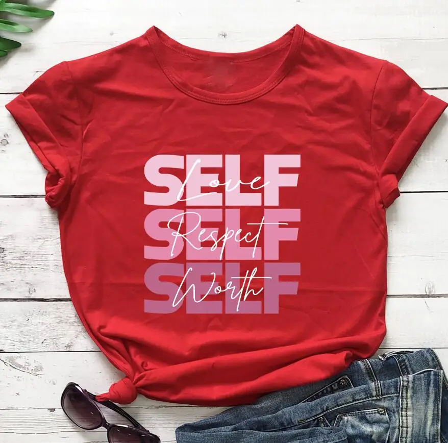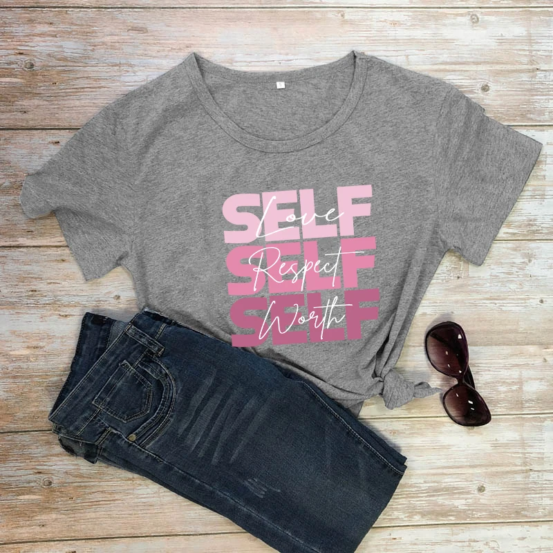 Женская рубашка для самостоятельной любви, самостоятельного уважения, уверенности в себе, мотивные рубашки, самостоятельные футболки, женские модные повседневные эстетические Топы