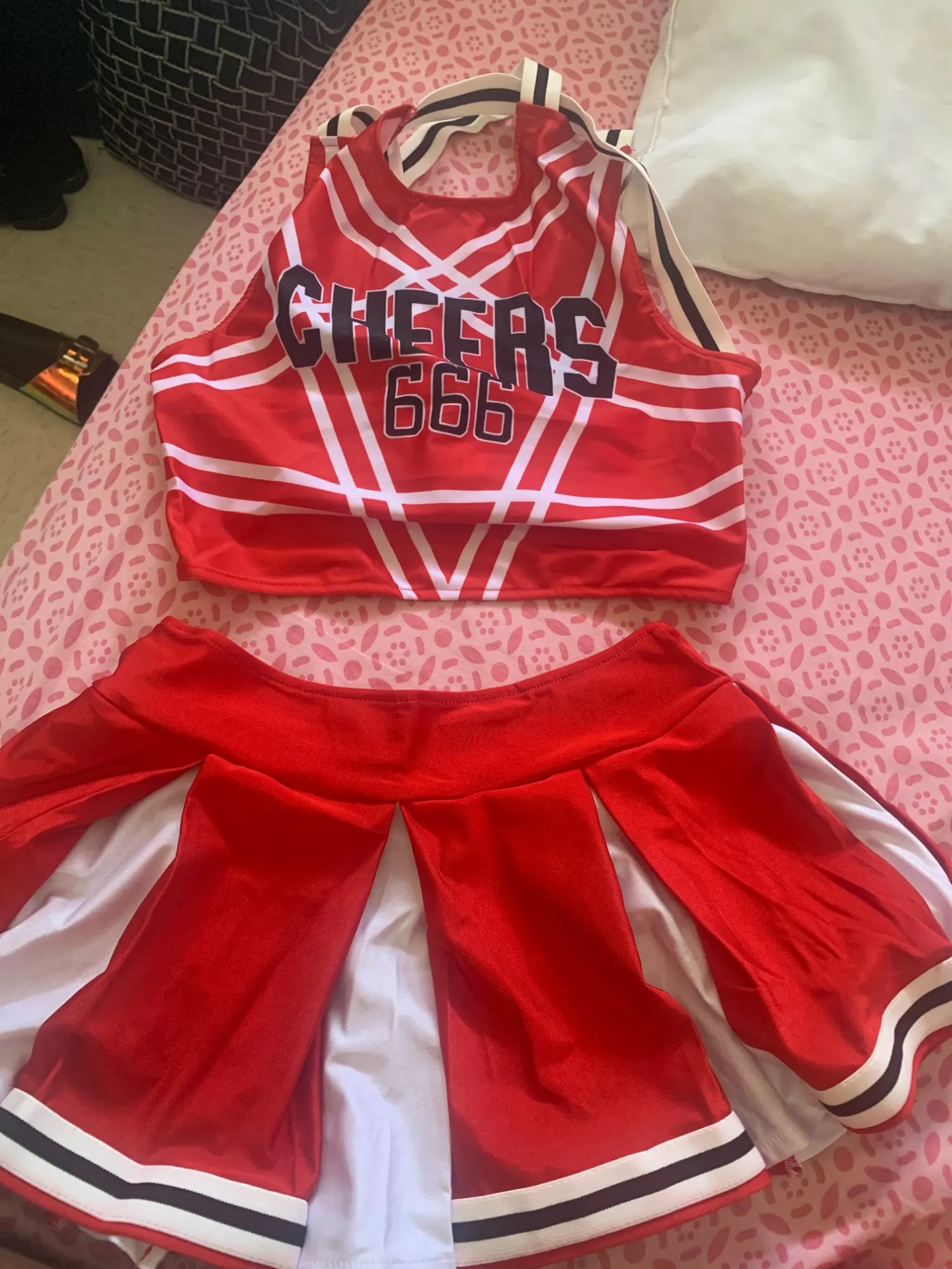 Особенности:Женский костюм болельщика для костюмированной вечеринки; Комплект одежды; Застежка на застежке.Без рукавов и с открытой спиной, с эластичными лямками, с пентаграммой сзади, спереди напечатаны буквы «CHEERS 666».Сочетающаяся мини-плиссированная юбка с эластичным поясом, хорошая эластичная ткань, мягкая и удобная в носке.Хороший выбор для нарядов, ролевых игр, сценических костюмов, карнавала, танцев, соревнований по танцам и т. д.Для получения подробной информации о размерах обратитесь к описанию товара. Ручная стирка в холодной воде.