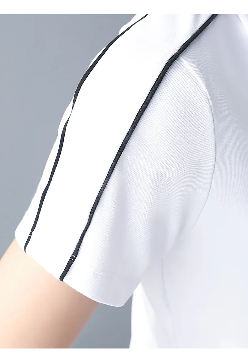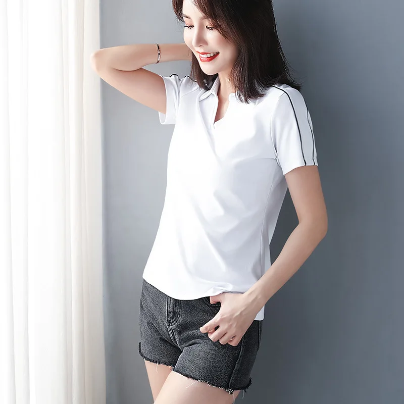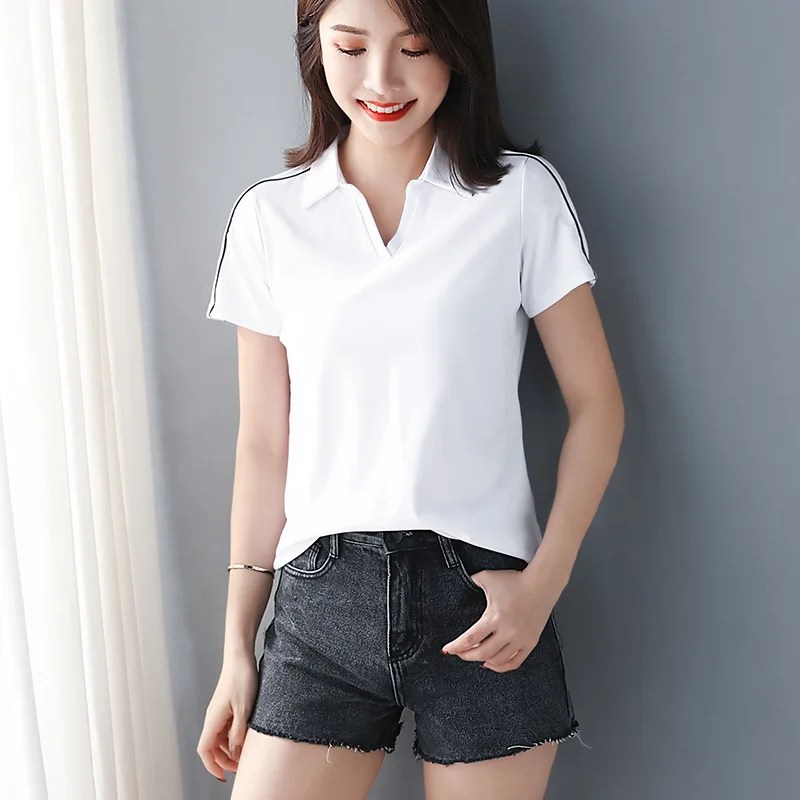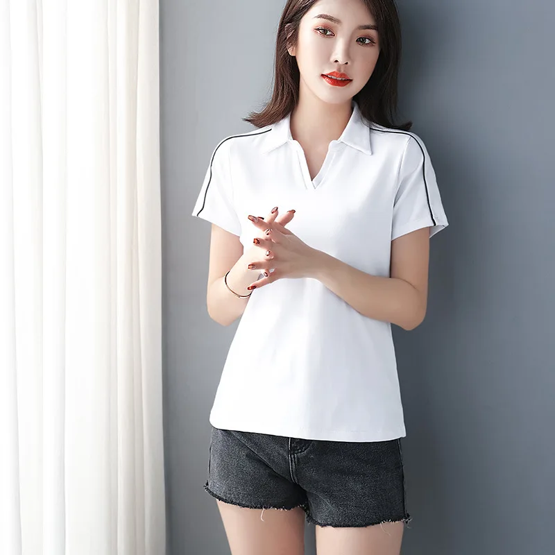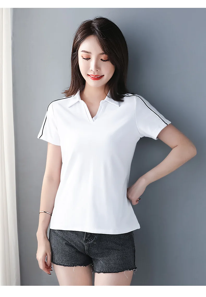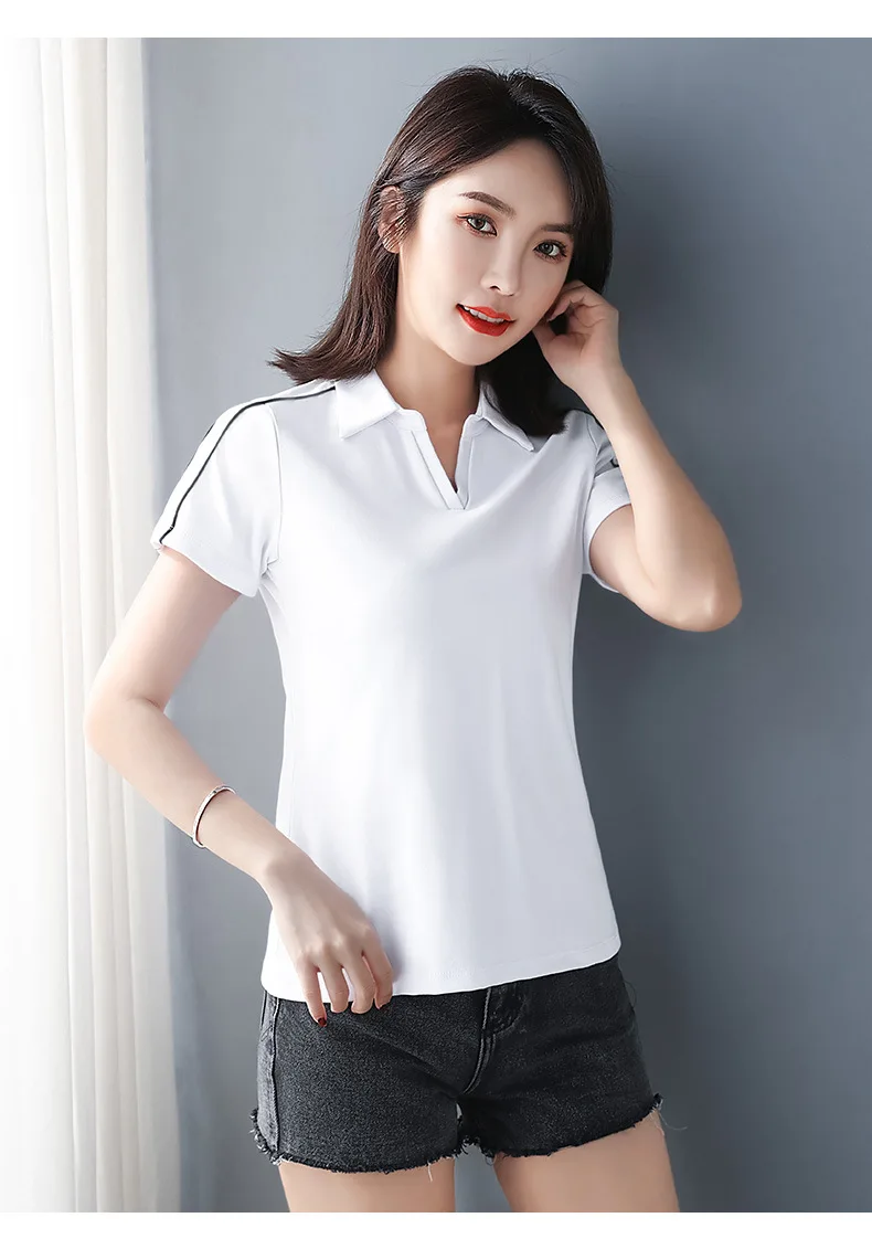 Женская летняя хлопковая Футболка-поло с коротким рукавом, черная, белая Повседневная Женская одежда, базовые Топы
