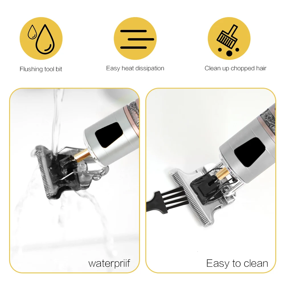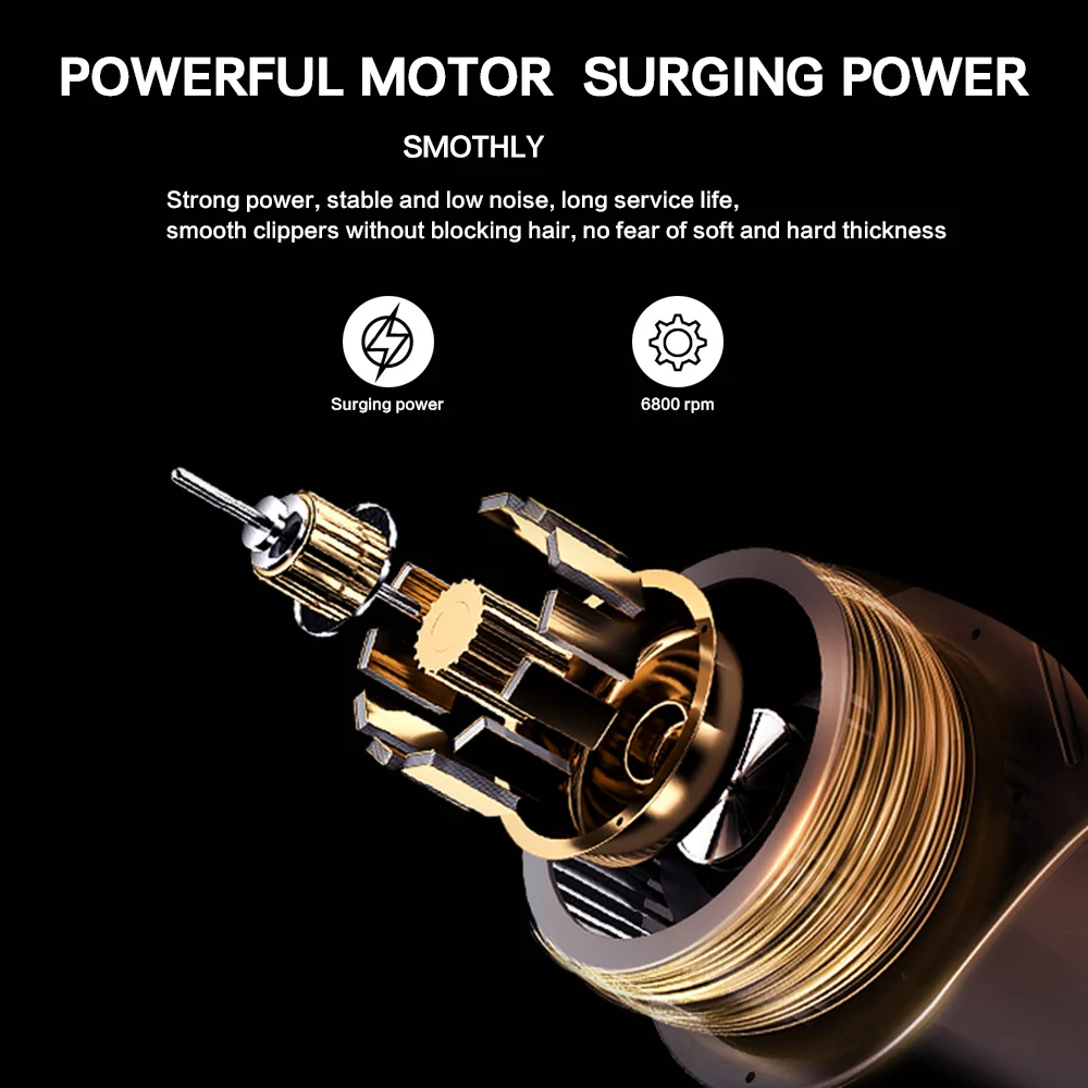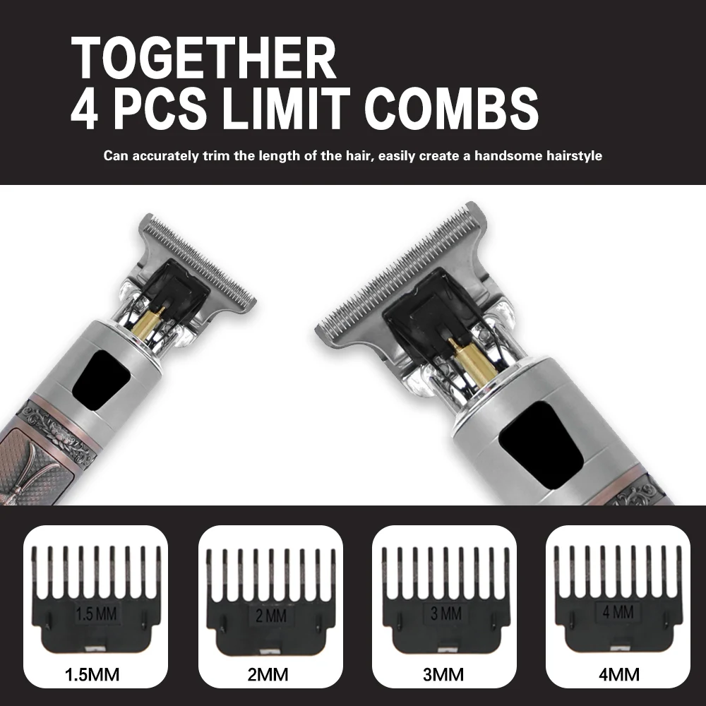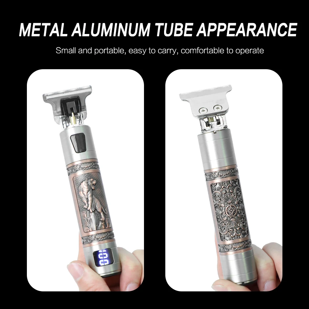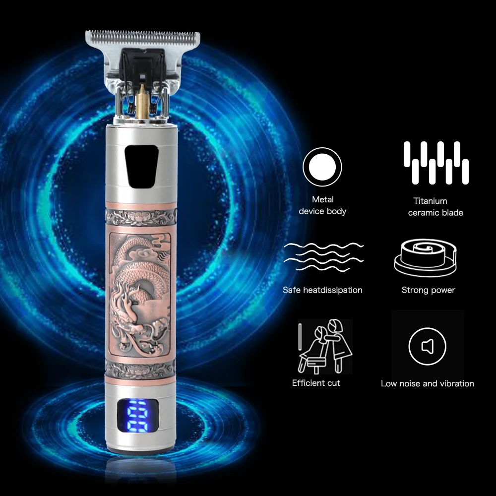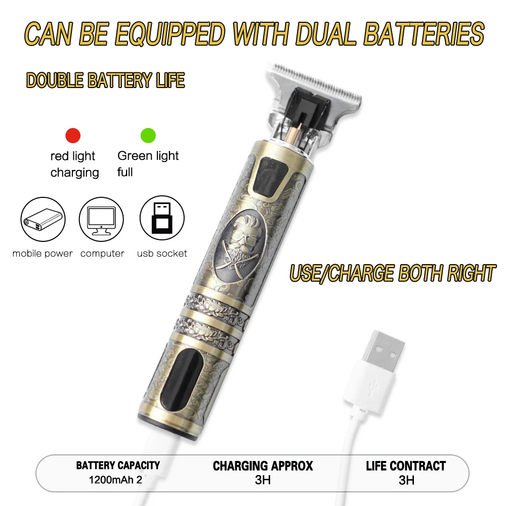 Основной дизайн 1: 180 сильное магнитное усилие, сильная мощность, процесс плавной стрижки волос, адаптация для любых мягких или жестких волос Базовый дизайн 2: Встроенный литиевый аккумулятор 18500, 1200 мАч, с USB-кабелем для зарядки, зарядка более беззаботна, ее можно заряжать в любое время и в любом месте. Используется для почти месяц после зарядки в течение 2 часов Конструкция сердечника 3: Т-образное лезвие из углеродистой стали с более высокой механической прочностью и более длительным сроком службы, не повреждает кожу головы, не застревает и не ржавеет. Конструкция подвесного кронштейна хорошо рассеивает тепло и нелегко скапливать поврежденные волосы. Основной дизайн 4: металлический внешний вид, цилиндрический корпус, гравированная текстура, удобный захват, ретро-вид и Мода без потери качества.