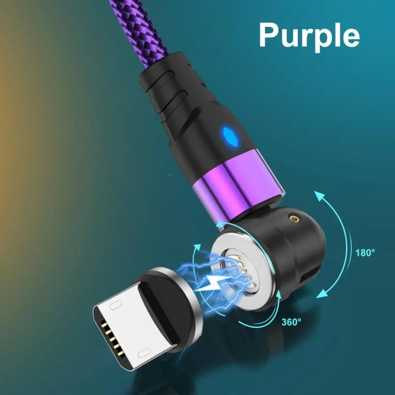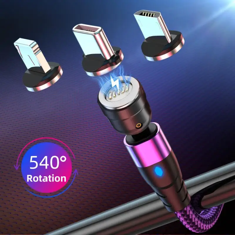 Магнитный кабель с поворотом на 540 градусов, 3 А, быстрая зарядка, 3 в 1, кабель Micro USB Type-C для IPhone, Xiaomi, Магнитный зарядный кабель