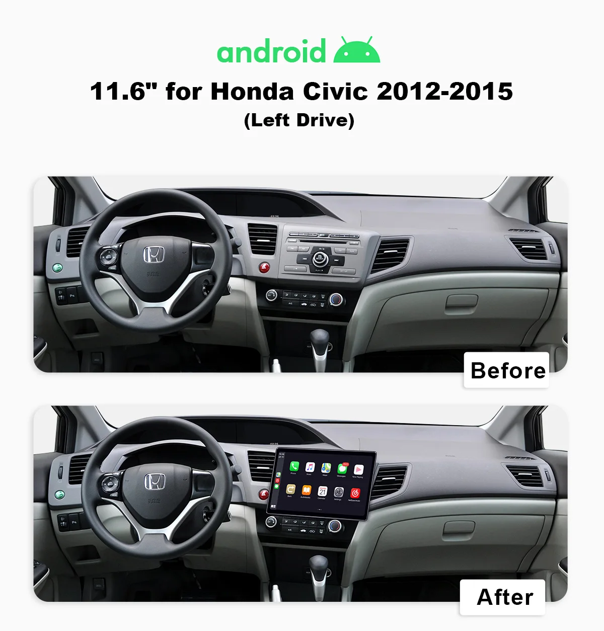 Автомобильная магнитола JOYING, 11,6 дюйма, Android 10, для Honda Civic 2012-2015