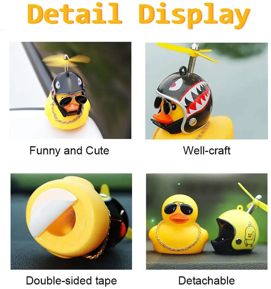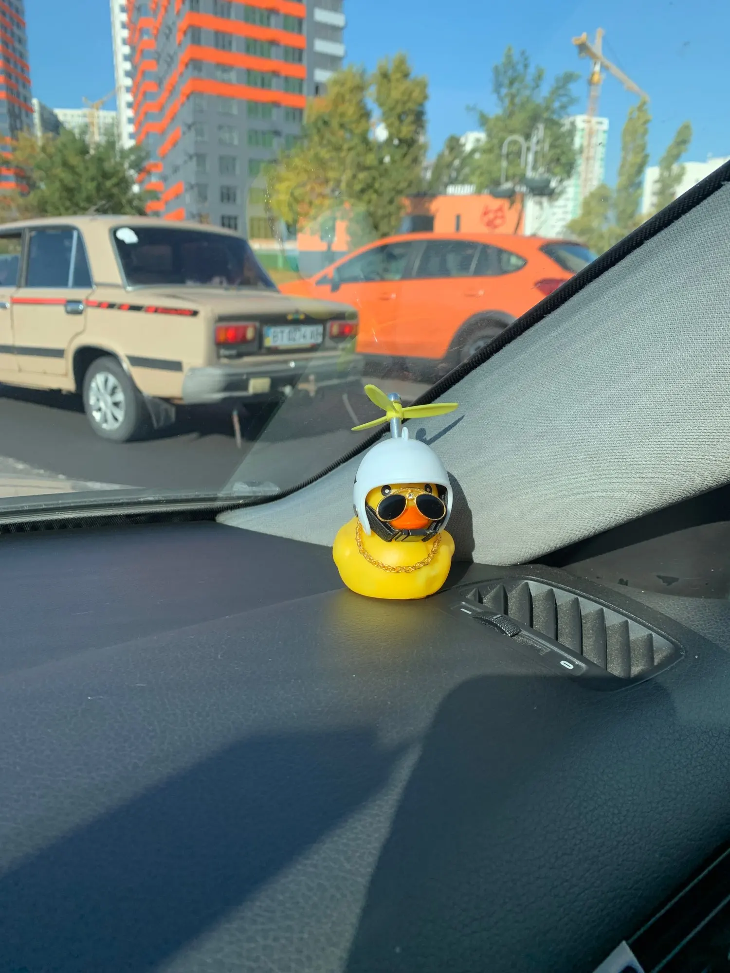 Резиновая утка для украшения автомобиля, Желтая утка для украшения приборной панели автомобиля, крутые очки, утка с пропеллером в шлеме
