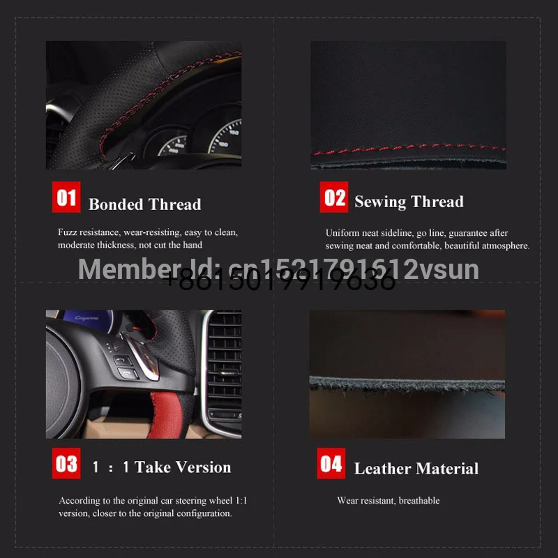 1,100% новинка, Высококачественная кожа2, дышащий, удобный и противоскользящий свитер, обеспечивает очень комфортное ощущение всего круглого руля3, пошив самостоятельно нитью и иглой, Наслаждайтесь DIY удовольствием4, отлично подходит для замены поврежденных или изношенных Оригинальных Заводских кожаных покрытых рулей