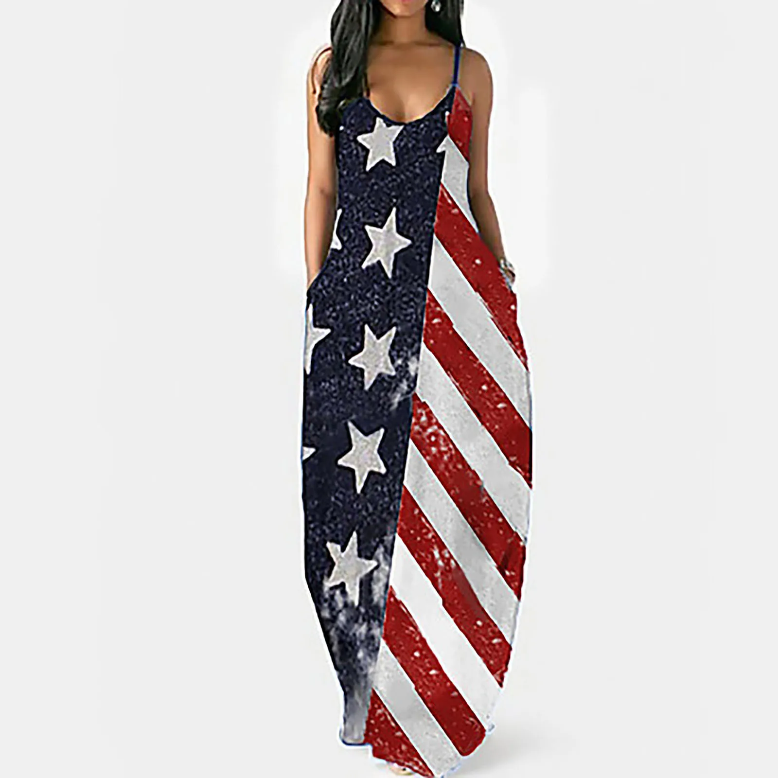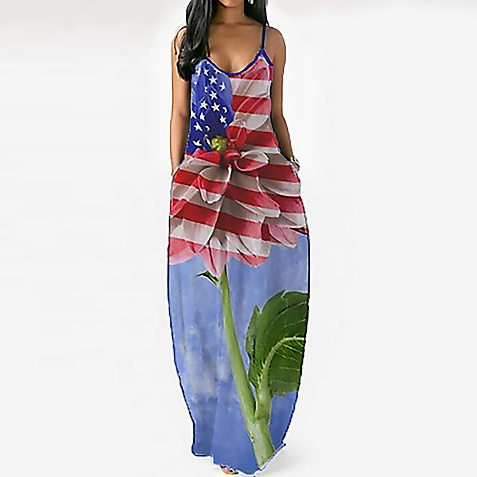 Американский флaг сшa yзкиe платья для женская летняя обувь в полоску и со звездами Макси платье большого размера плюс повседневные сарафаны для девочек халаты ко Дню независимости