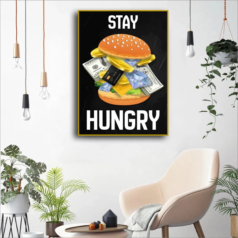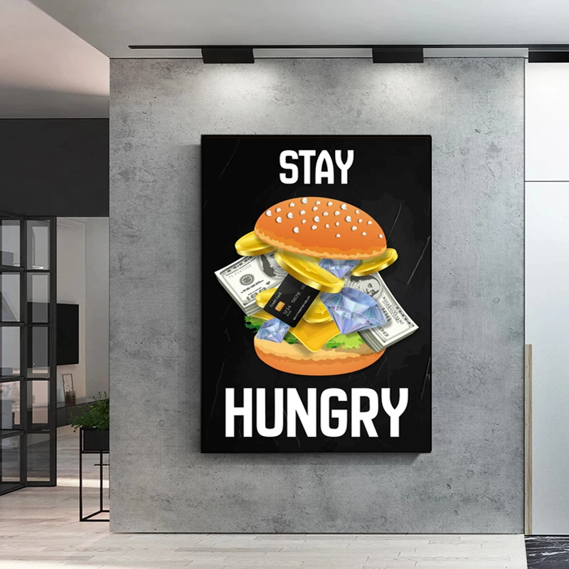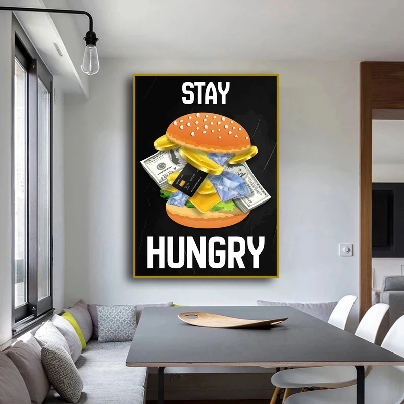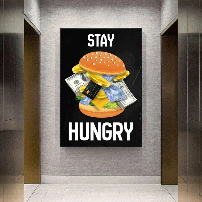 Картина на холсте с изображением голодных алмазов и гамбургеров