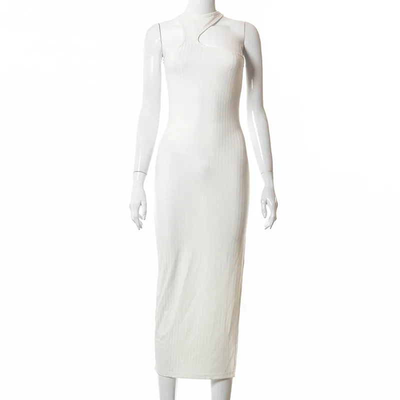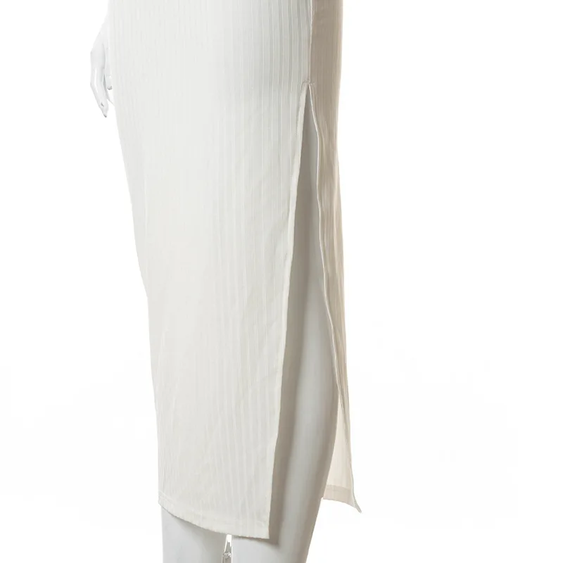 Женское трикотажное платье-халтер Articat, белое асимметричное платье миди в рубчик с разрезом, однотонное длинное платье для вечеринки, на лето, 2021