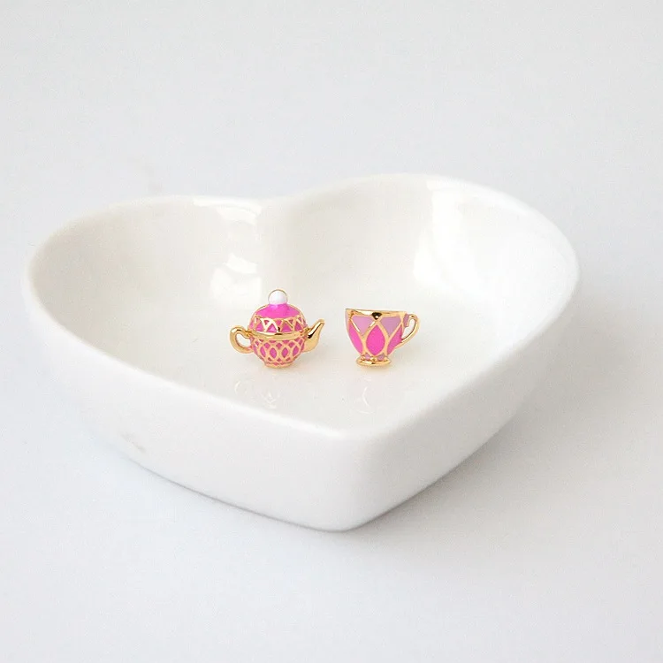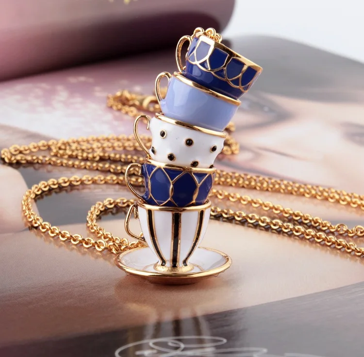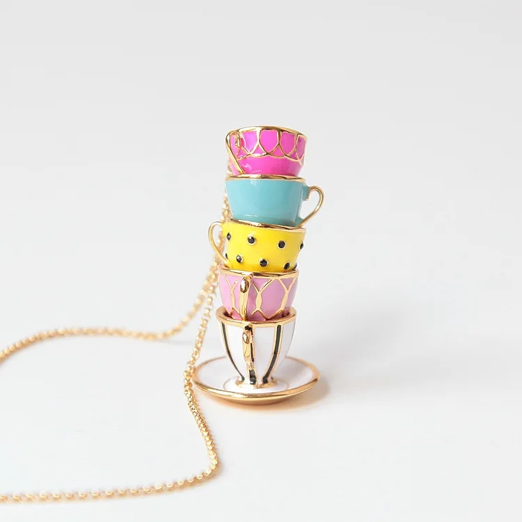 Классический элегантный чайник красочные чашки асимметричные серьги ожерелья Модные Ювелирные наборы для женщин вечерние аксессуары, хороший подарок для ребенка