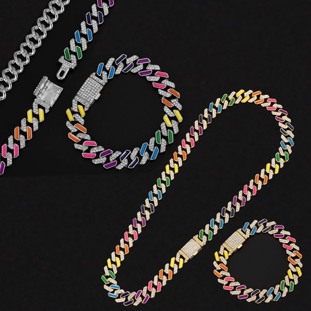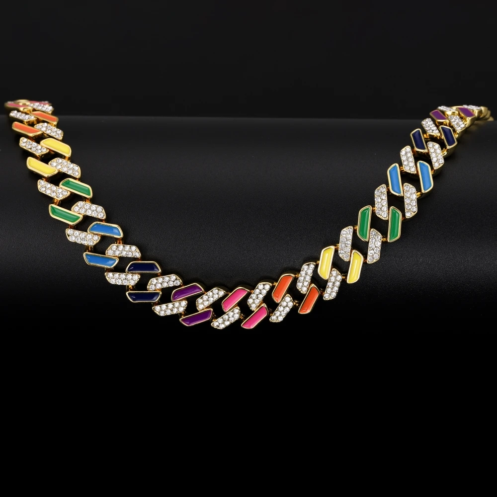 △Material: Высокое качество! Золотая Корона с серебряным покрытием цепи ожерелье с более чем 300 стразы, Hand-made процесс, чтобы обеспечить продукт может быть драгоценные и блеск, все стразы, которые ручной инкрустированные ремесленниками, кубинское ожерелье без никеля, без свинца и безвредно для здоровья