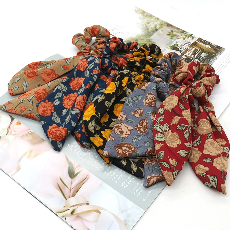 Популярные эластичные резинки для волос с принтом для женщин и девушек, банты, повязка на голову, резинки для волос, держатель для конского хвоста, аксессуары для волос