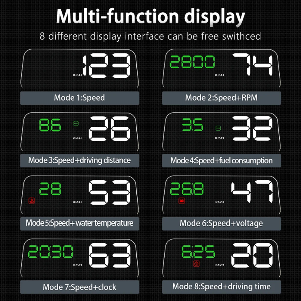 Универсальный автомобильный HUD скорость об/мин миль/ч Хладагент Напряжение время головы дисплей проектор автомобиля OBD2 Авто Сигнализация цифровой скоростной датчик C500