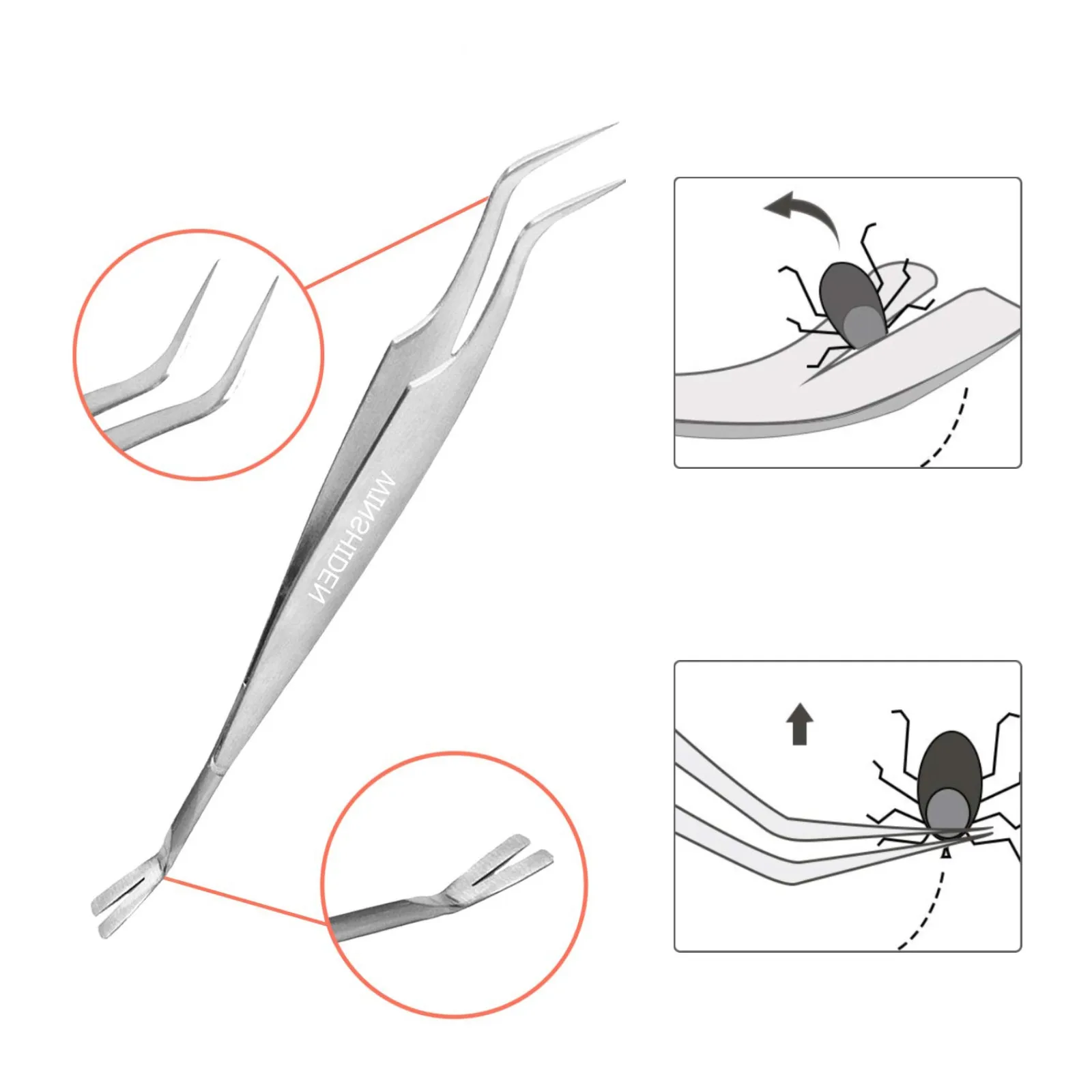 [Высококачественный материал]: виншиден Пинцет tick изготовлен из нержавеющей стали и пластика, безопасный и прочный, и может эффективно удалять клещи с собак, кошек и людей. Пинцет, который мы подготовили для людей, имеет долгий срок службы и не повредит кожу и волосы домашних животных. Напоминание: Очистите и высушите после использования, чтобы избежать остаточной крови от паразитов.