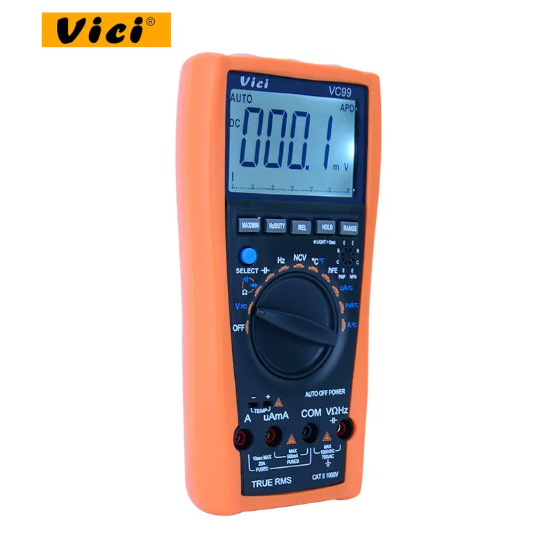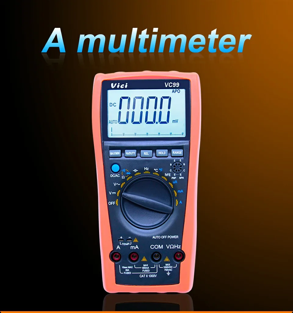 Описание:Этот 3 7/6 цифровой универсальный электроизмерительный прибор с весьма стабильную работу Управляется 2 шт. 1,5 V батарея. Он использует ЖК-дисплей с 23 мм высокой фигурой, что делает чтение более четким и более удобным в эксплуатации.Цифровой мультиметр поддерживает функции измерения DCV, ACV, DCA, ACA, сопротивления, емкости, частоты, температуры, рабочего цикла, транзисторов, диодов и непрерывности и т. д. Он также может обеспечить специальные функции, включая аналоговый бар, дисплей символа блока, хранение данных, измерение относительного значения, максимальное/минимальное измерение значения, Автоматическое/ручное переключение диапазона (диапазон), автоматическое выключение питания и предупреждающий сигнал. Для того, чтобы обеспечить высокую точность и разрешение, он принимает 8-битный микропроцессор и двойной интеграл a/D преобразования IC в качестве своей основной, который может управлять ЖК-дисплей напрямую. Это идеальный инструмент для лабораторий, фабрик и радиотехнологий.