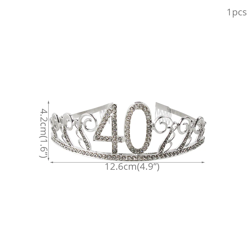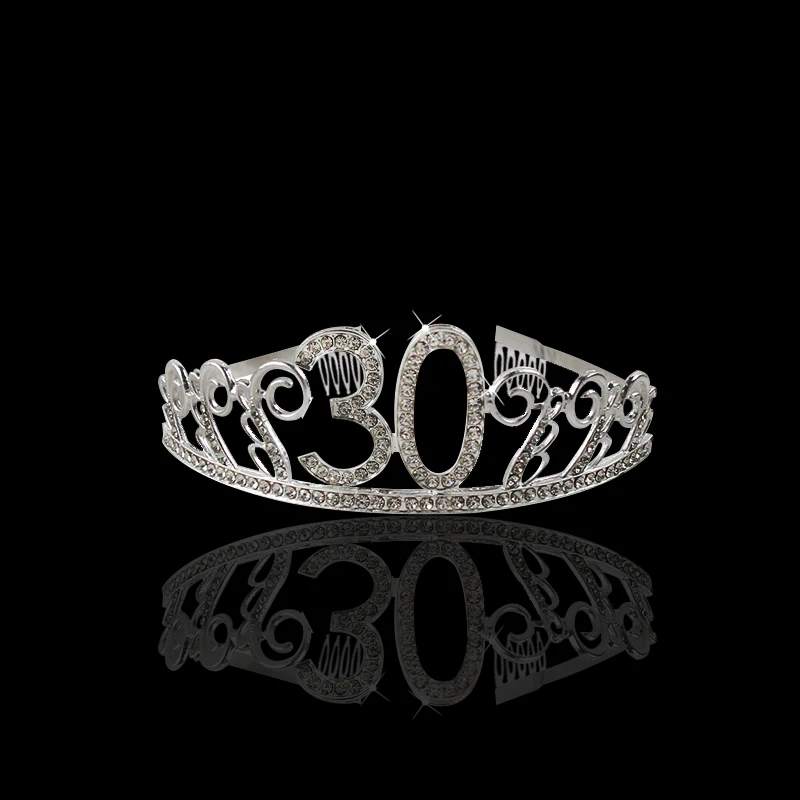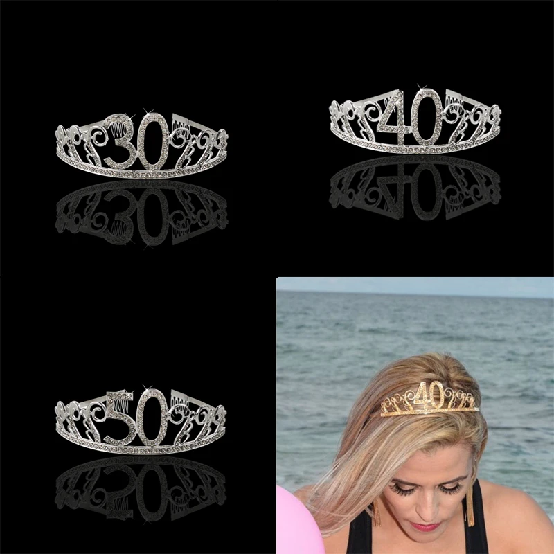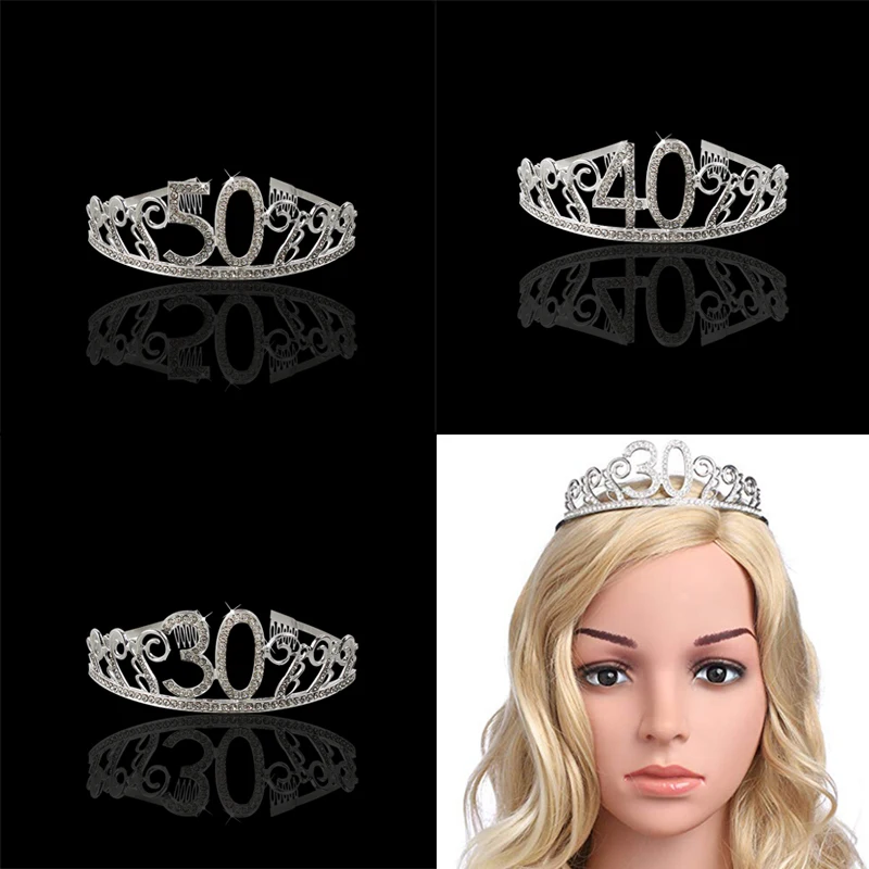 Стиль: вечеринкиЦвет: серебристыйРазмер: 12,6 см * 4,2 смКоличество: как на картинкеНазвание: 30 40 50 хрустальные стразы для взрослых тиара корона принцессыПрименение: Взрослый день рождения 30, 40, 50Использование: Декоративная Корона головная повязка для взрослых
