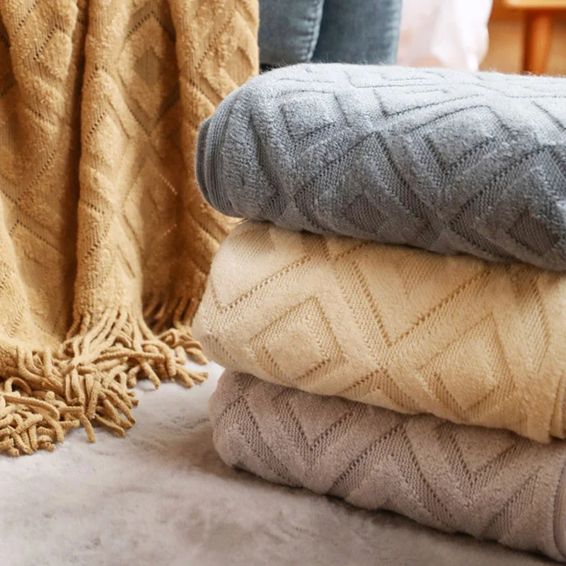 Текстильное кашемировое одеяло в форме алмаза для дивана, однотонно...