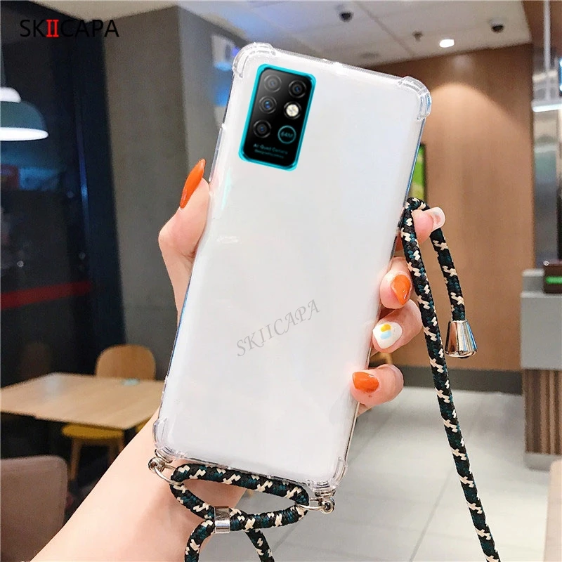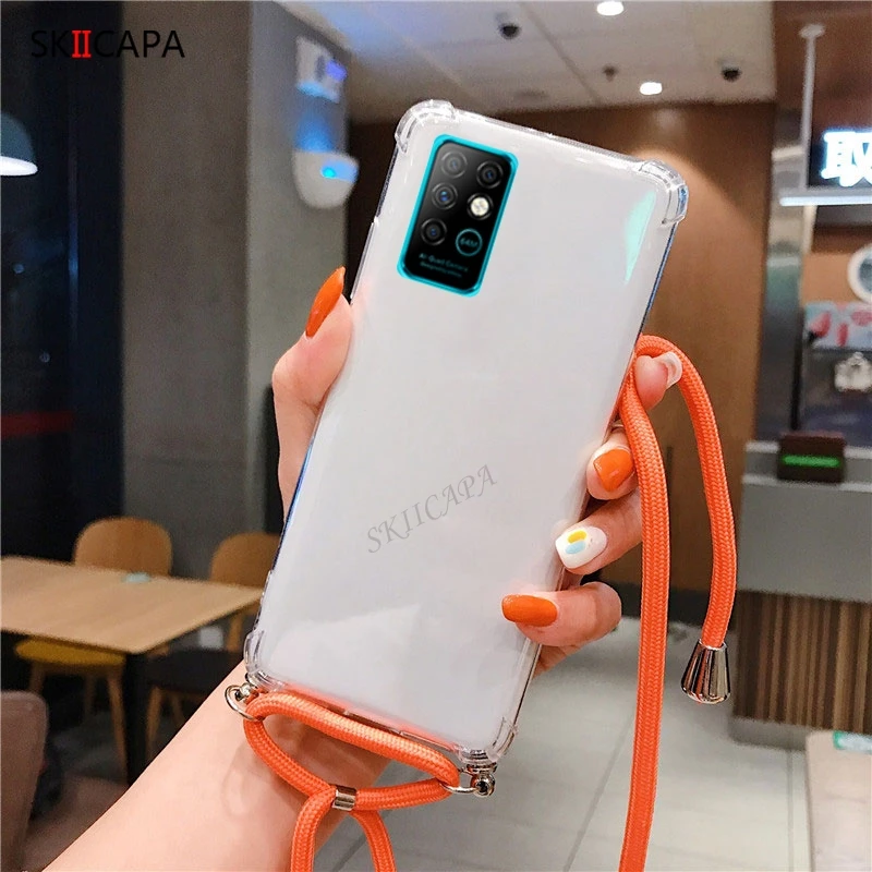 Прозрачный Силиконовый противоударный чехол для Infinix Note 8 7 Zero 8i для Infinix Smart 5 Hot 10 9 Lite Play, чехол с ремешком через плечо