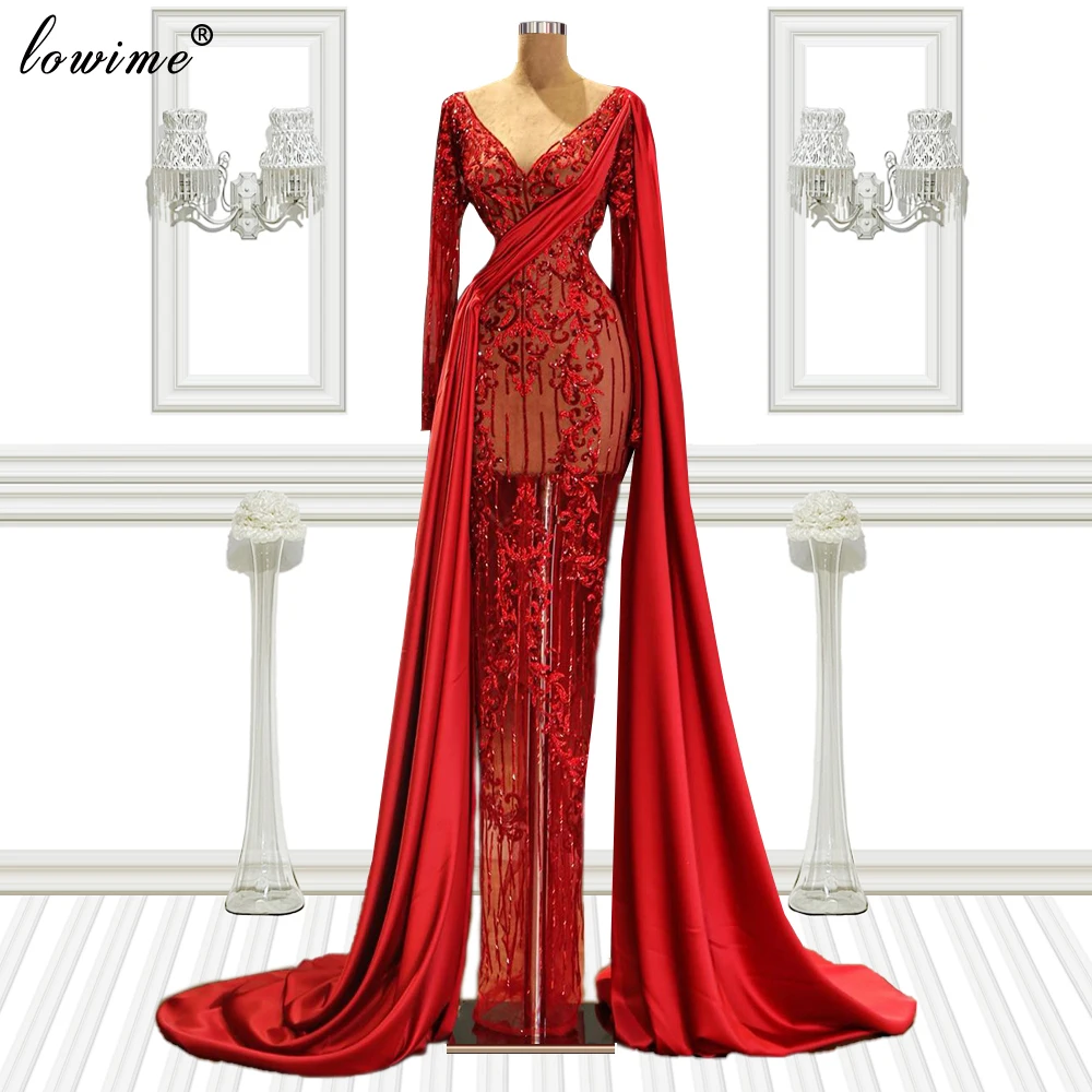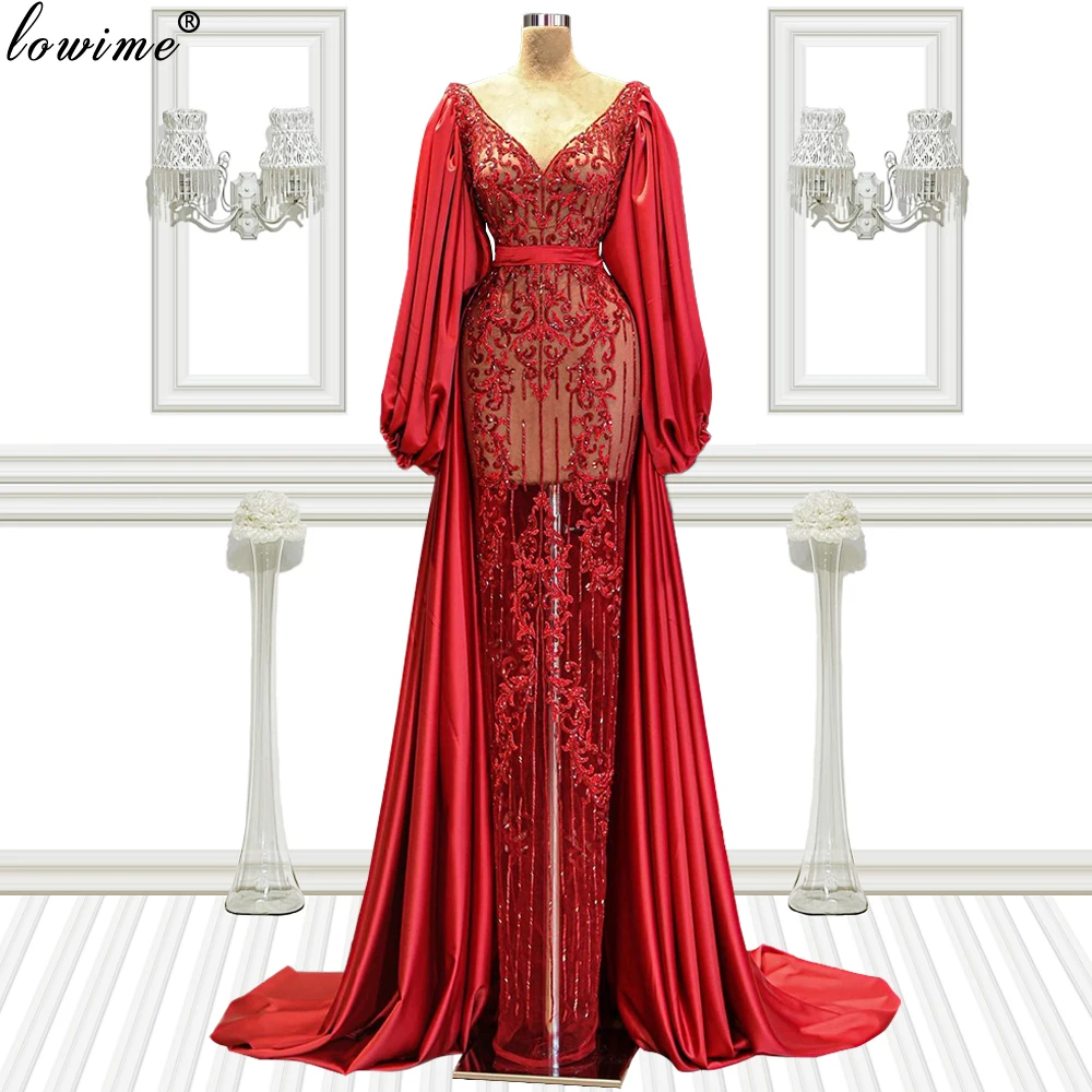 3 вида стилей, красные вечерние платья с длинными рукавами, иллюзия Дубаи, вечерние платья для женщин, платья знаменитостей русалки, Vestidos De Noite