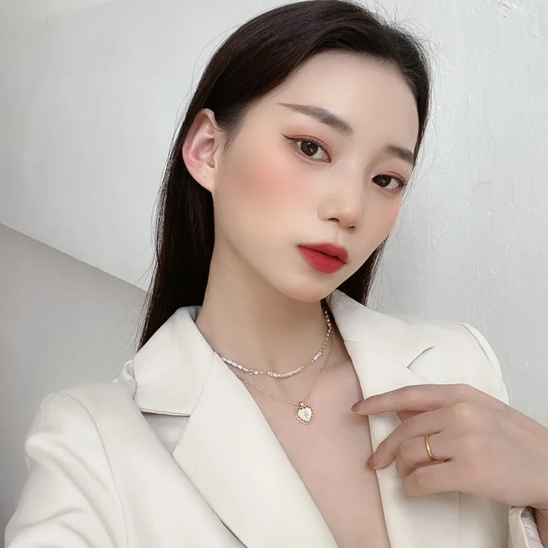 Модные украшения, Двухслойное ожерелье, популярный дизайн, несколько бусин, цепочка с симпатичная подвеска-сердце, ожерелье для женщин, ювелирные изделия, подарок