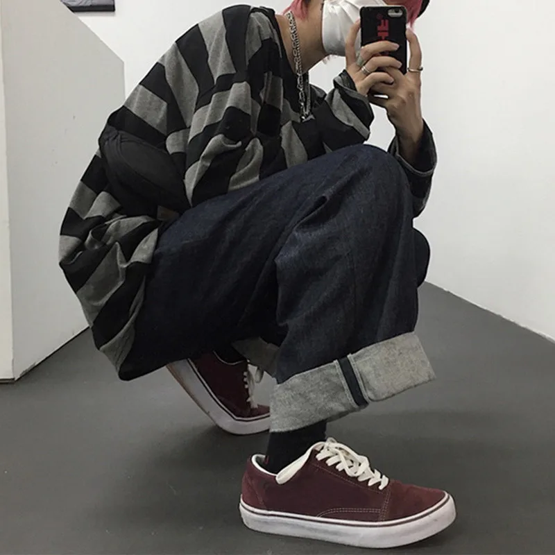 Футболка в полоску Dihope в стиле Харадзюку, Oversized, с длинными ...