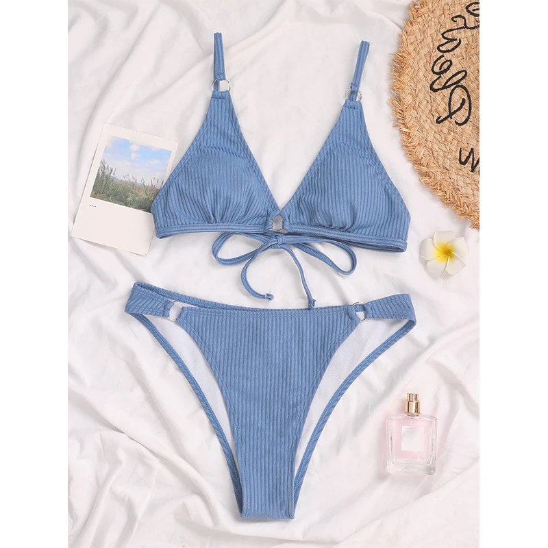 Купальник женский в рубчик In-X 2021, однотонный купальный костюм, стринги, пикантный купальный костюм, бикини, лето купальник с кольцом
