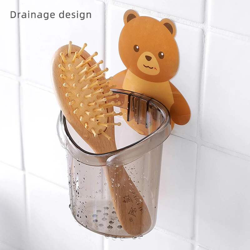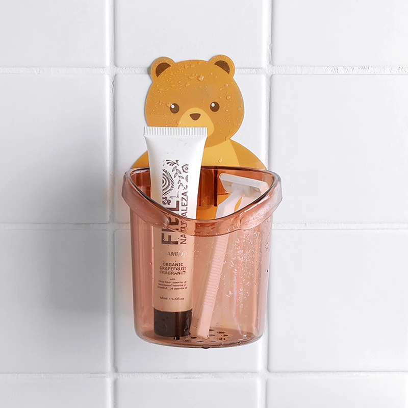 Держатель для зубных щеток с мультяшным медведем, настенный органайзер для ванной комнаты, бытовая детская коробка для хранения зубных щеток