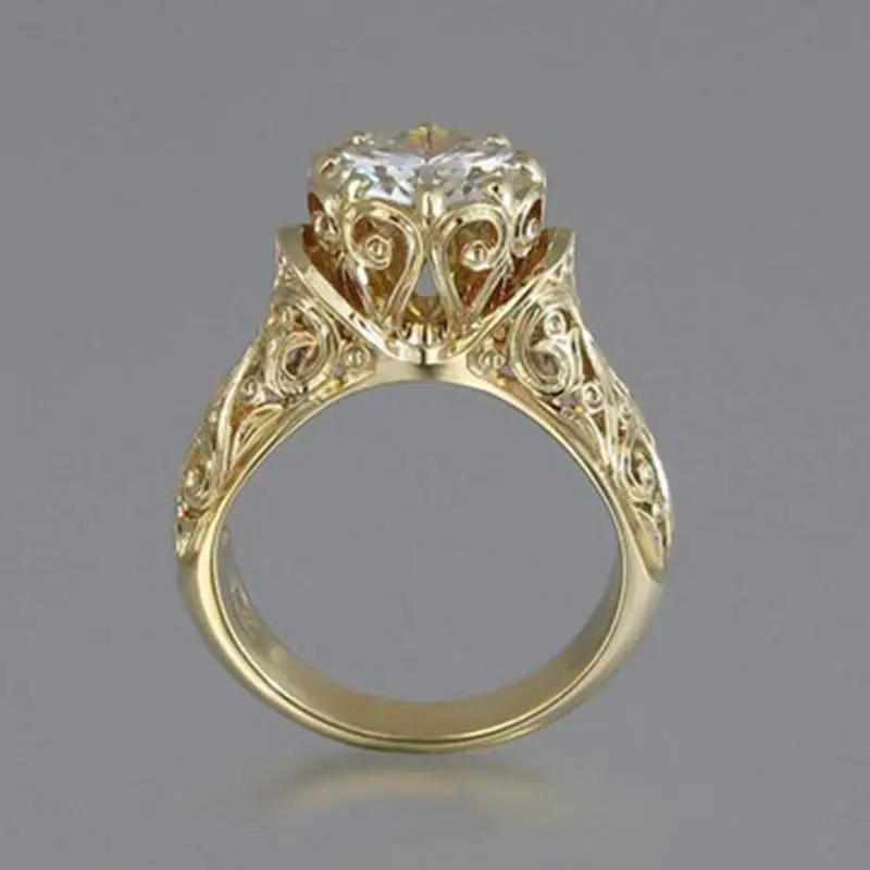 Женское кольцо с фианитом, резное обручальное кольцо золотого цвета...