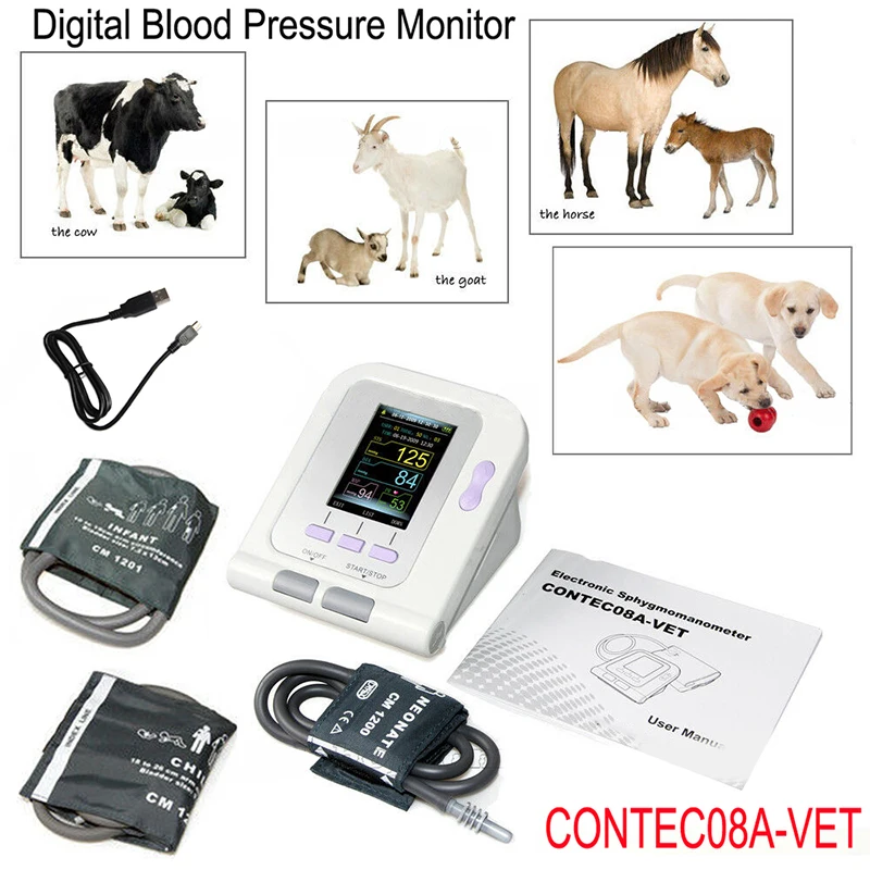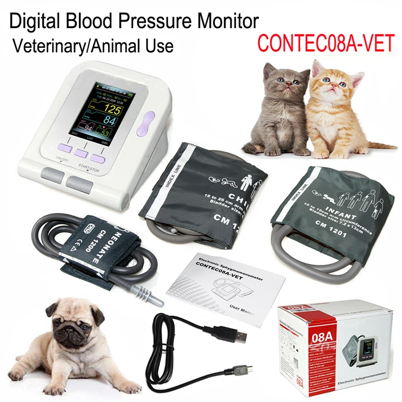 CONTEC08AVet ветеринарный цифровой монитор артериального давления новорожденный + младенческий + детский манжет для животных USB программное обеспечение 3 манжеты для животных