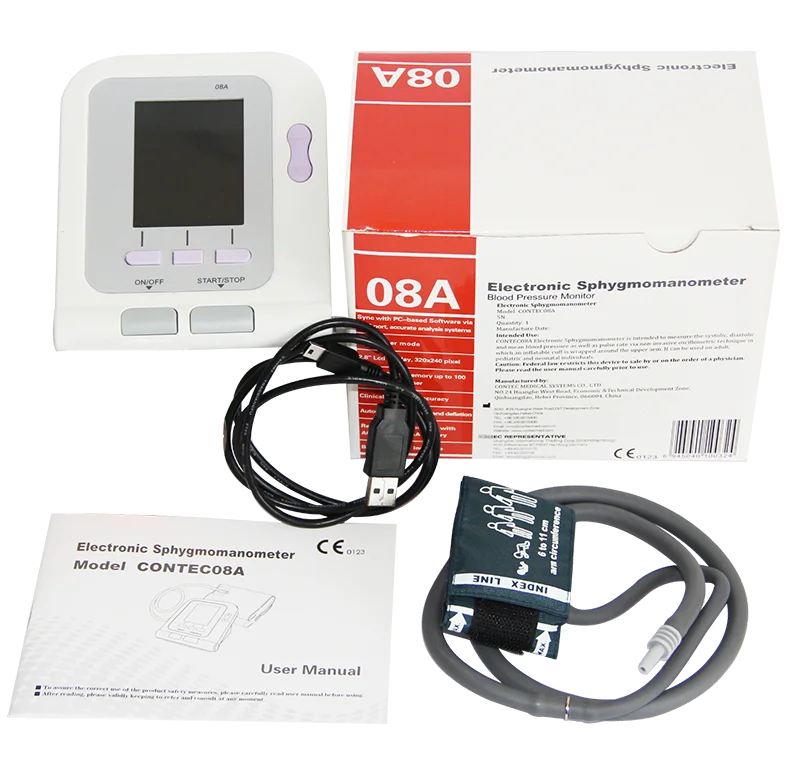 1X CONTEC08A-VET электронный сфигмоманометр1X манжета для новорожденных 6-11 см1x10-19 см детская манжета1 х Детская манжета 18-26 см1X USB кабель1X Руководство пользователяАдаптер питания и зонд (опционально, не входит в комплект)