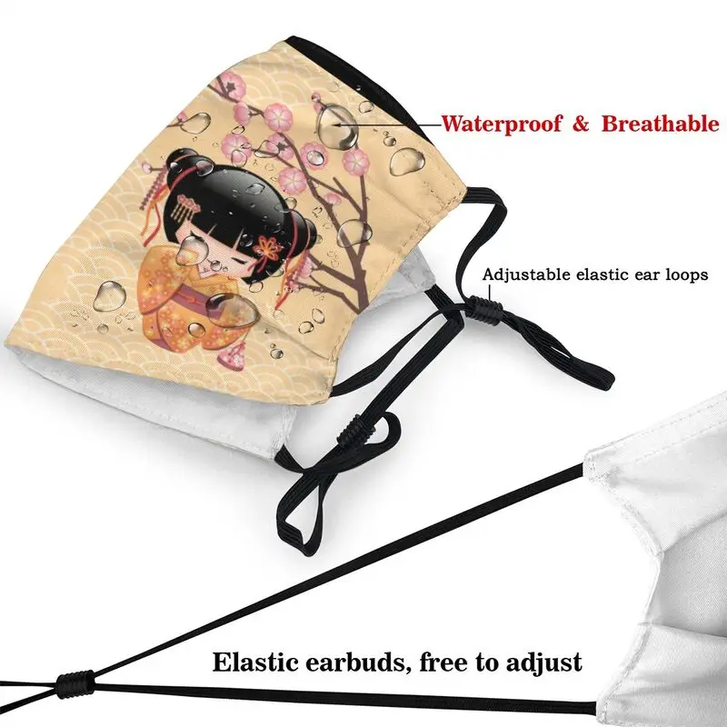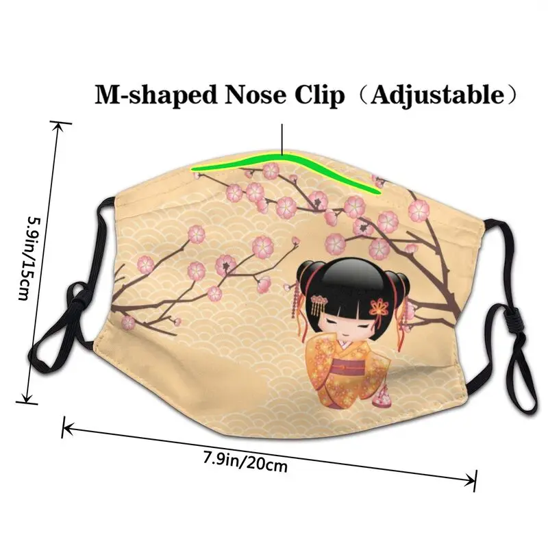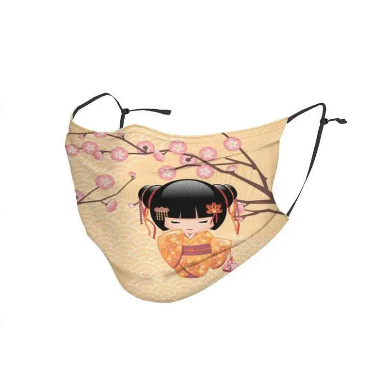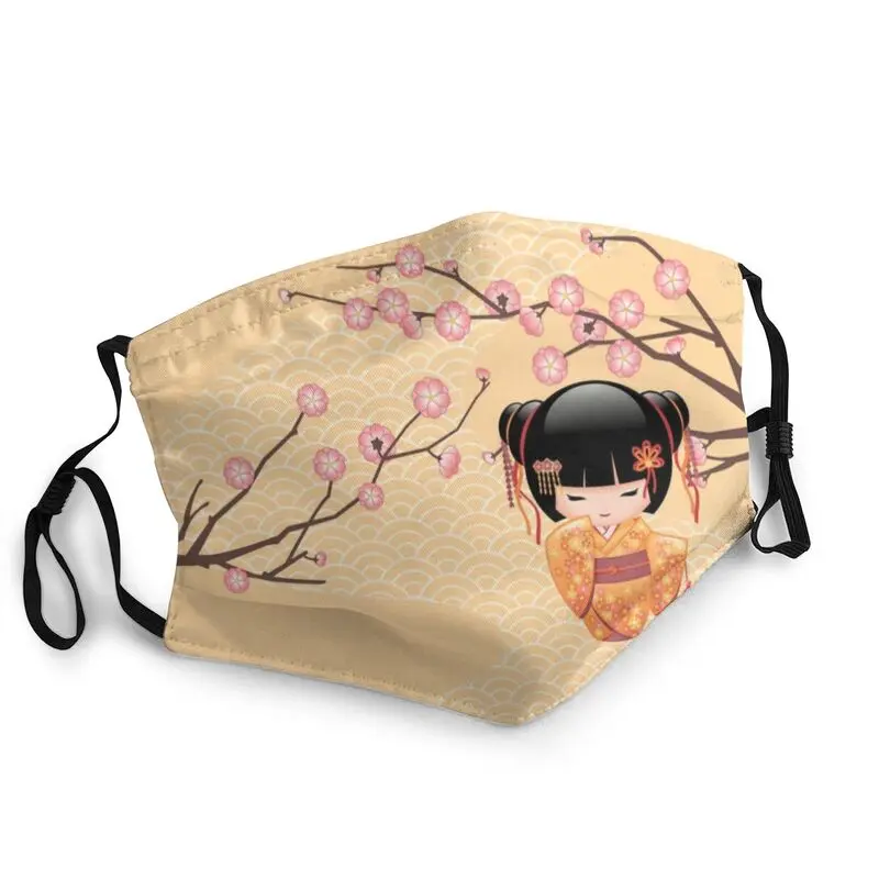 Милая кукла Kokeshi, маска для рта и лица унисекс против смога, японская маска сакуры, цветущей вишни, Защитный дышащий респиратор, маска