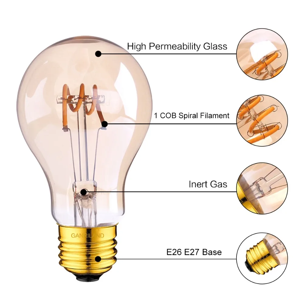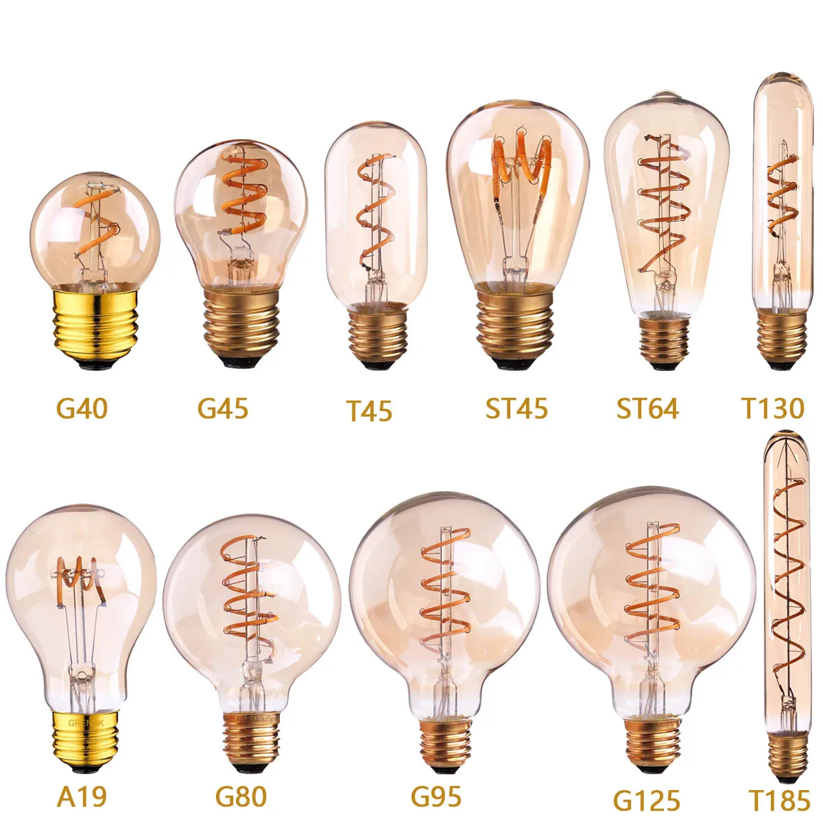 Винтажный светодиодный светильник E26 E27 с винтовым Эдисоном, светодиодный светильник накаливания, лампа 110 В 220 В, теплый белый, 2200 к, люстра, светильникМодель: светодиодный спиральный нити Ночная лампочка
