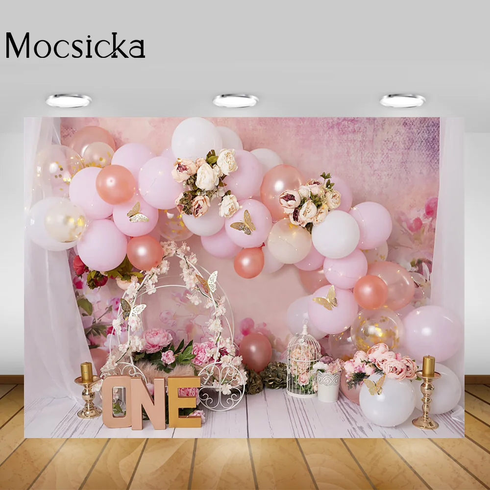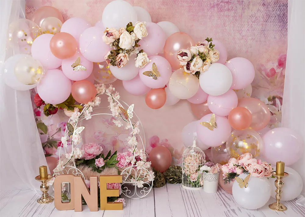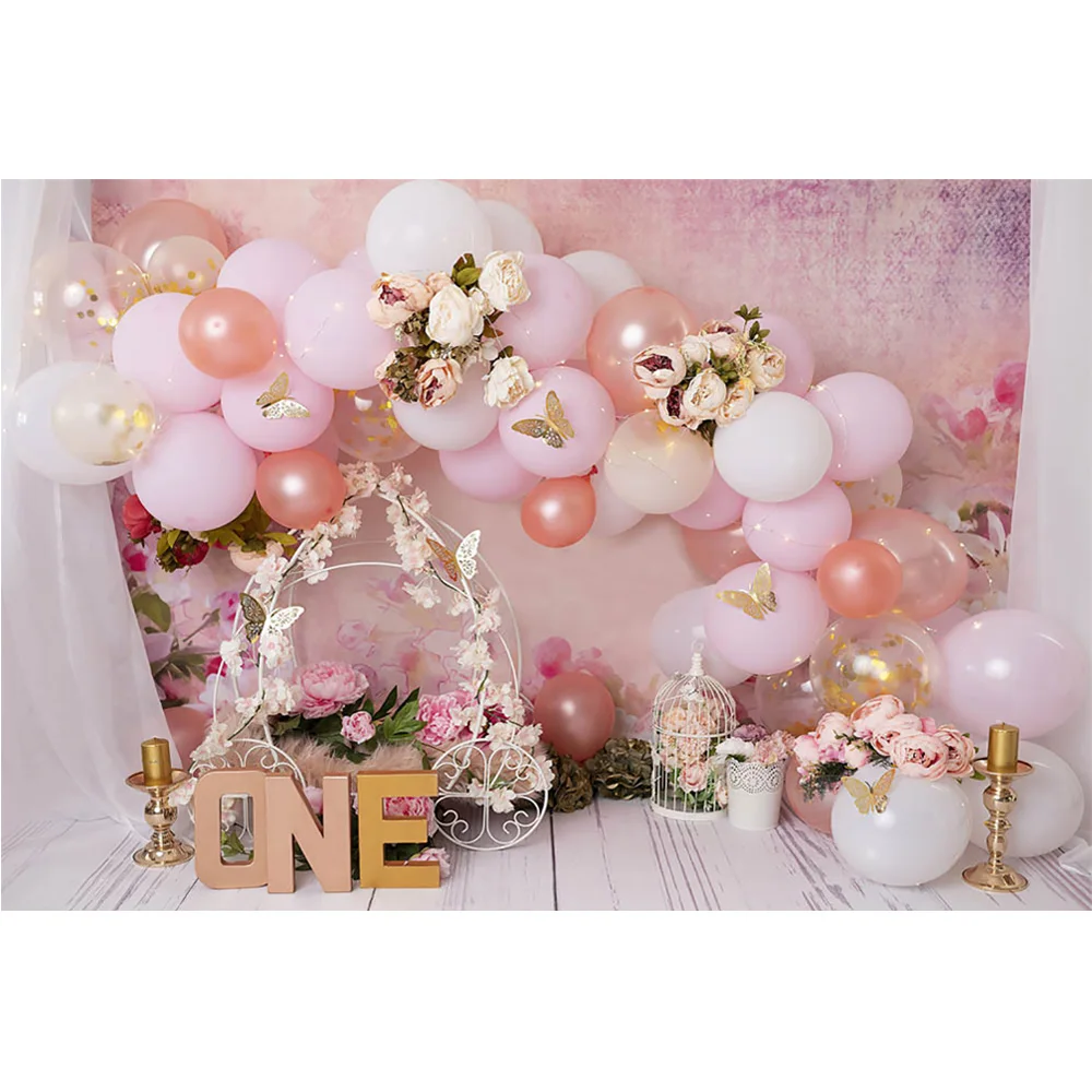 Фон для фотосъемки новорожденных с изображением бабочки, портрета, воздушных шаров, цветов, торта