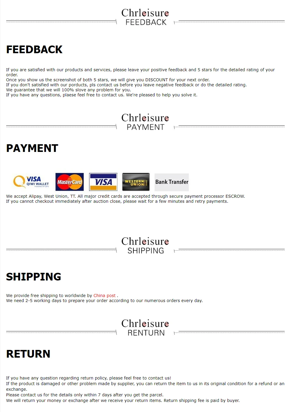 CHRLEISURE Stylish Store - Надежность 95.75%