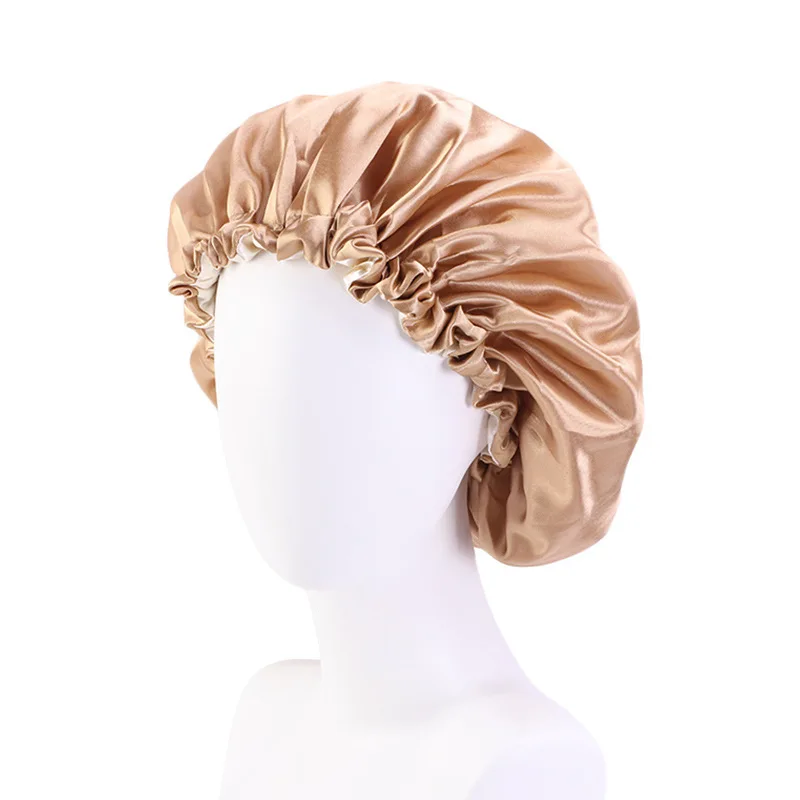 Новая однотонная женская Атласная шапочка, Модная шелковая большая шапочка для леди, головной убор, головной убор, аксессуары для волос, Оптовая продажа
