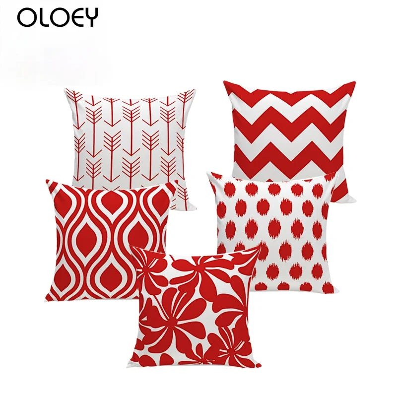 Скандинавские подушки, красные, белые декоративные бархатные геометрические подушки, чехлы для домашнего декора, чехол для подушки, чехол для дивана 45x45cm