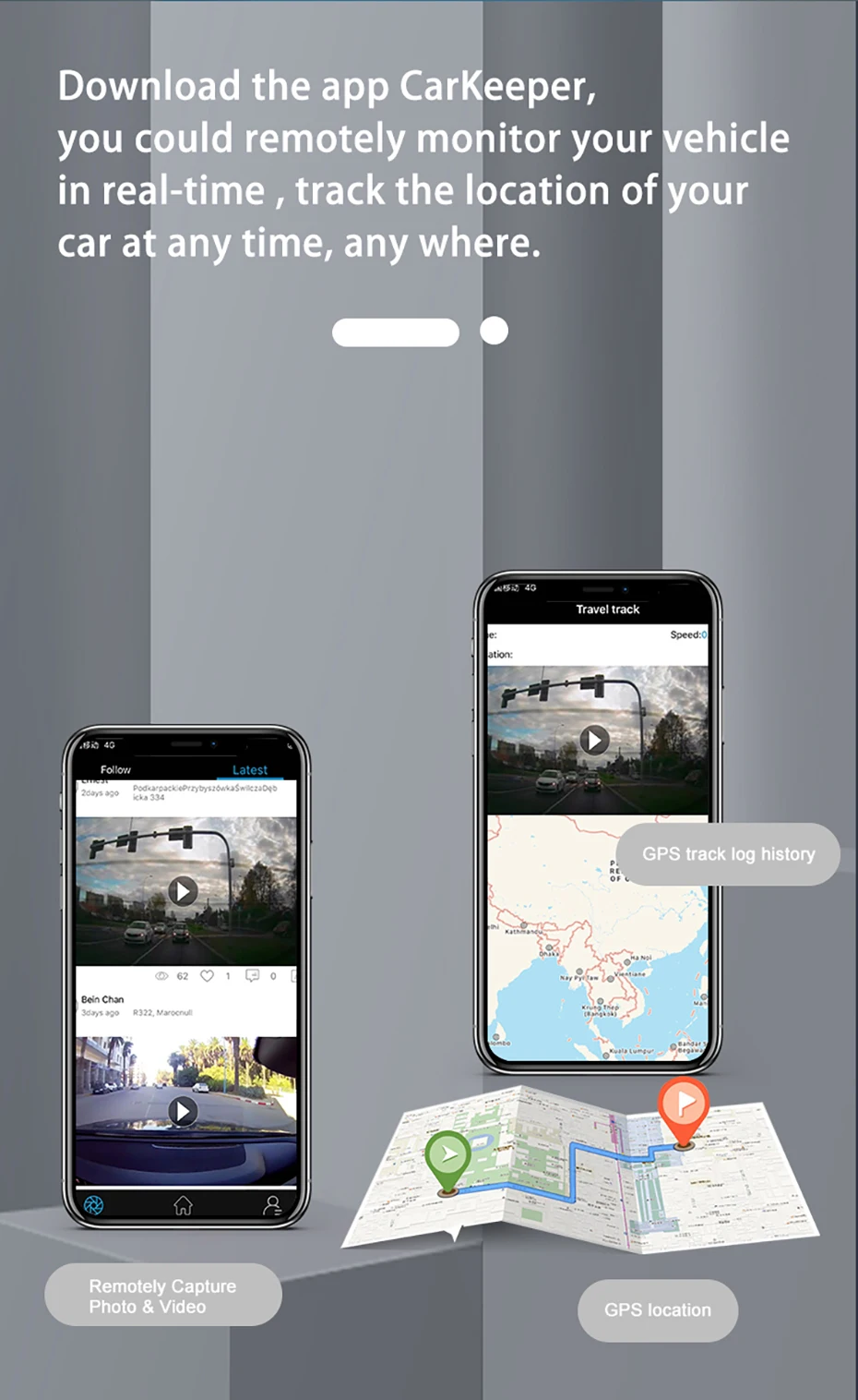 Встроенный Wi-Fi позволяет оставаться на связи на ходу и быстро просматривать веб-сайты. GPS карта, фильмы, музыка и приложения могут быть предварительно загружены, когда доступен бесплатный WiFi. Не только Автомобильный видеорегистратор подключается к Wi-Fi, но и может быть точкой Wi-Fi для вашего другого устройства, когда Автомобильный видеорегистратор поставляется с интернетом на 2G/3G/4G sim-карты.