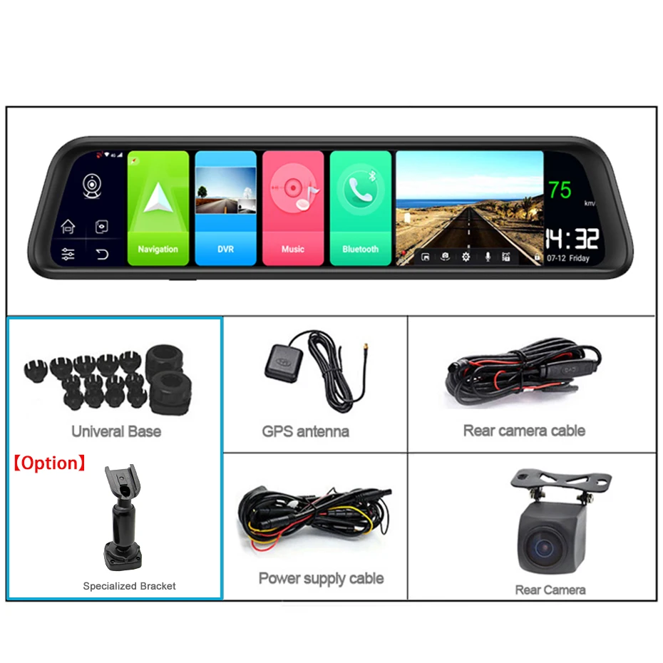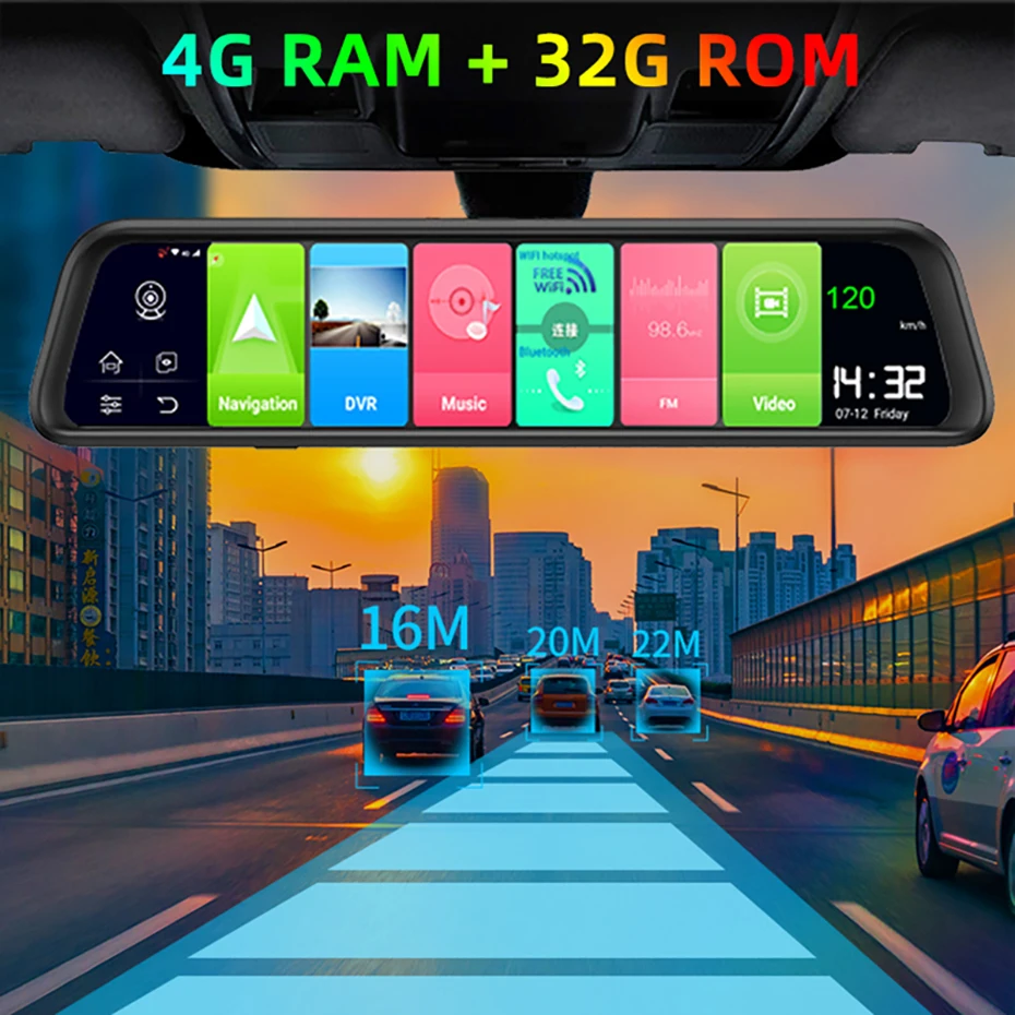 Автомобильный видеорегистратор Bluavido 4G LTE, 12 дюймов, зеркало 3 в 1, Android, DVR, GPS-навигация, ADAS, HD 1080P, двойная камера, Wi-Fi, удаленный мониторинг