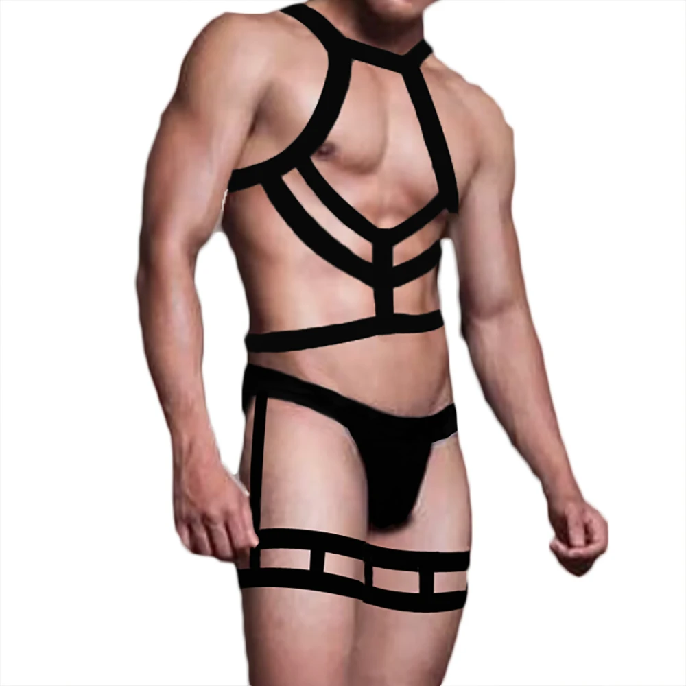 Описание: Материал: высококачественный жгут проводов Мужской нагрудный ремень, эластичная пряжка, один размер подходит большинству людей Изготовлен из прочных и приятных для кожи материалов с гарантированным качеством