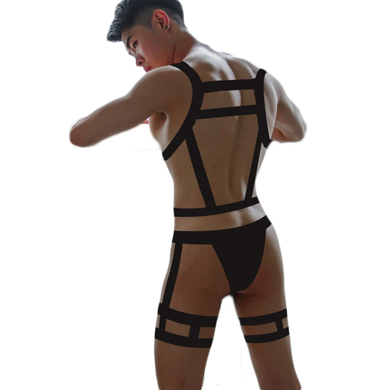 Бондаж мужской в готическом стиле, с кольцом для ног
