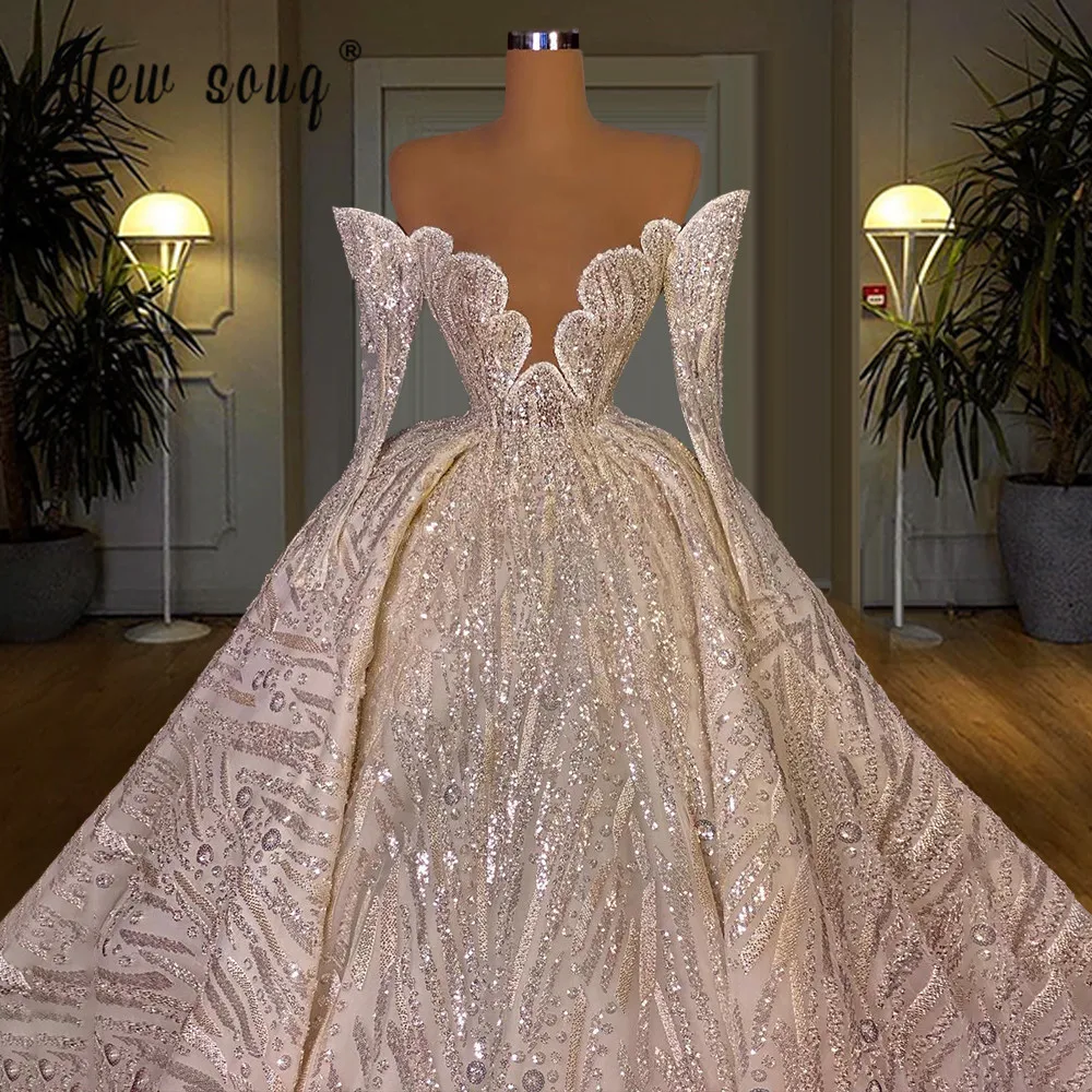 Свадебные платья со стразами для принцесс, а-силуэта, с длинным рук...