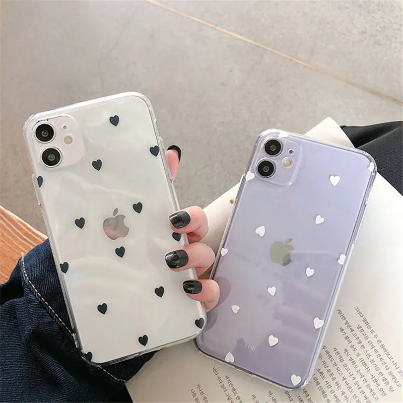 Милый чехол для телефона с сердечками и цветами для iPhone 11 12 13Pro Max Mini X XR XS 7 8 6s Plus 5 SE 2020, прозрачный мягкий чехол из ТПУ