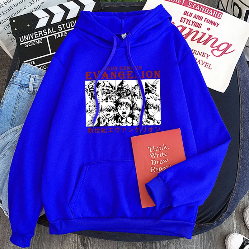 Толстовка мужская с японским аниме Евангелион, повседневный свитшот в стиле Харадзюку, с изображением персонажей мультфильмов аниме Евангелион янами Рей, топы