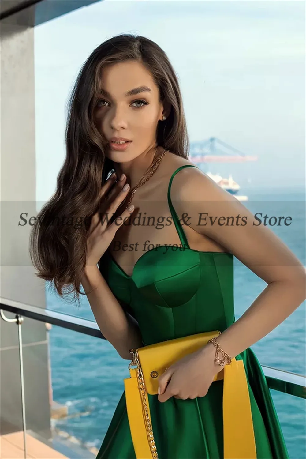 Женское вечернее платье с юбкой-годе Sevintage, зеленое атласное пл...