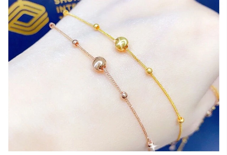 Браслет из настоящего 18-каратного золота Au750, розовое золото, блестящие бусины 5 мм, подарок для женщин, модные Универсальные ювелирные украшения из драгоценных камней