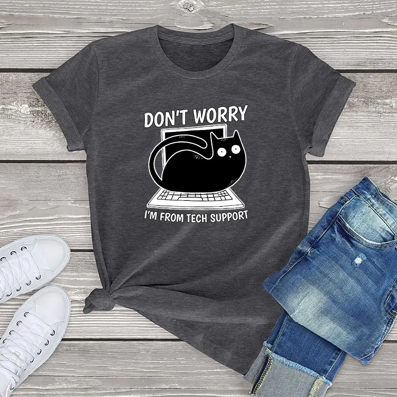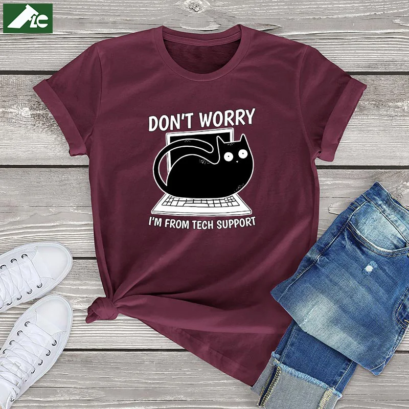 Кота на компьютере забавная женская рубашка 100; Домашние тапочки из хлопка для женщин, топы, очаровательная футболка Кот технические Tech Поддержка, одежда в стиле унисекс, мужские футболки 3xl для девочек, футболки для девочек, топы, блузки, стильное джинсовое платье с коротким рукавом в стиле кэжуал Топы 3xl Мягкие Блузки Женская одежда летние Уличная одежда 3xl