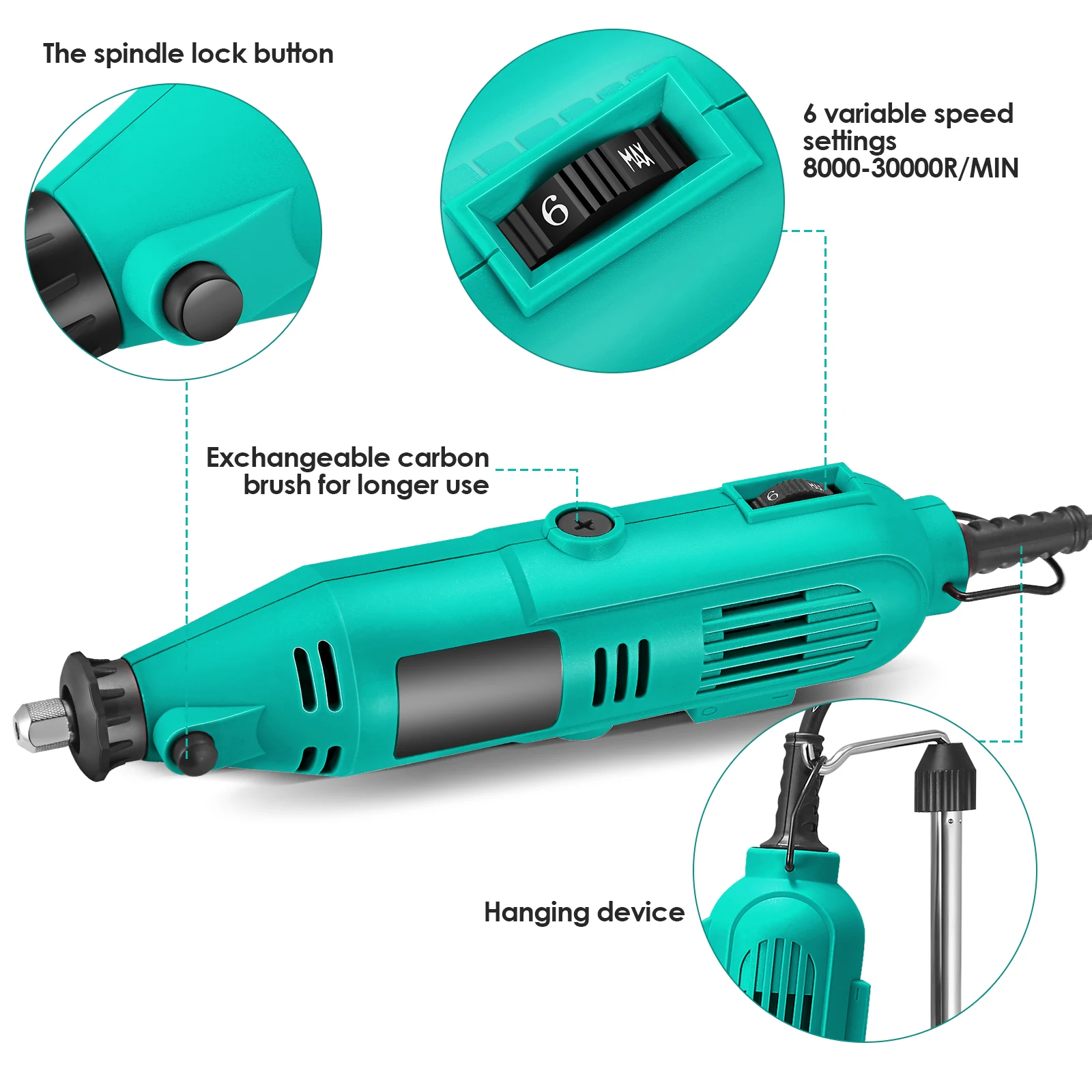 1 комплект 130 Вт мини шлифовальная машина 288 аксессуары 6 Скорость Электрический Роторный инструмент гравировальный станок для лазерной резкиполировкаскребоклазерная гравировка