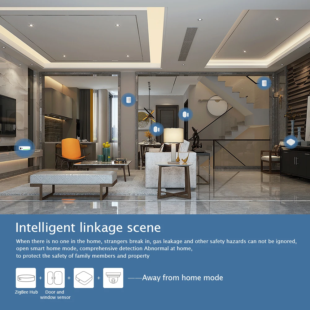 Когда вы выходите из дома, вы получите уведомление, если двери или окна открываются или вторгаются внешним объектом, вы немедленно обнаружите аномалии в вашем доме.