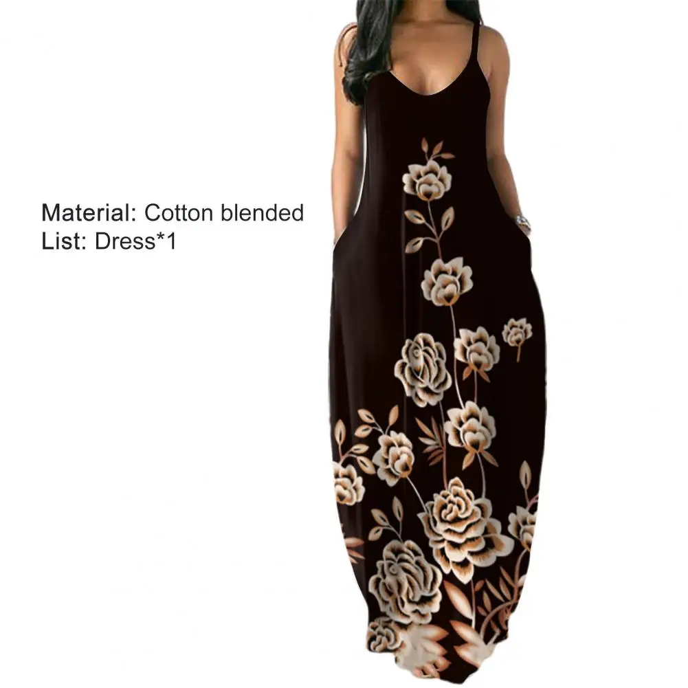 Платье-комбинация с цветочным принтом на бретельках; Летнее Длинное Платье-комбинация с карманами для путешествий