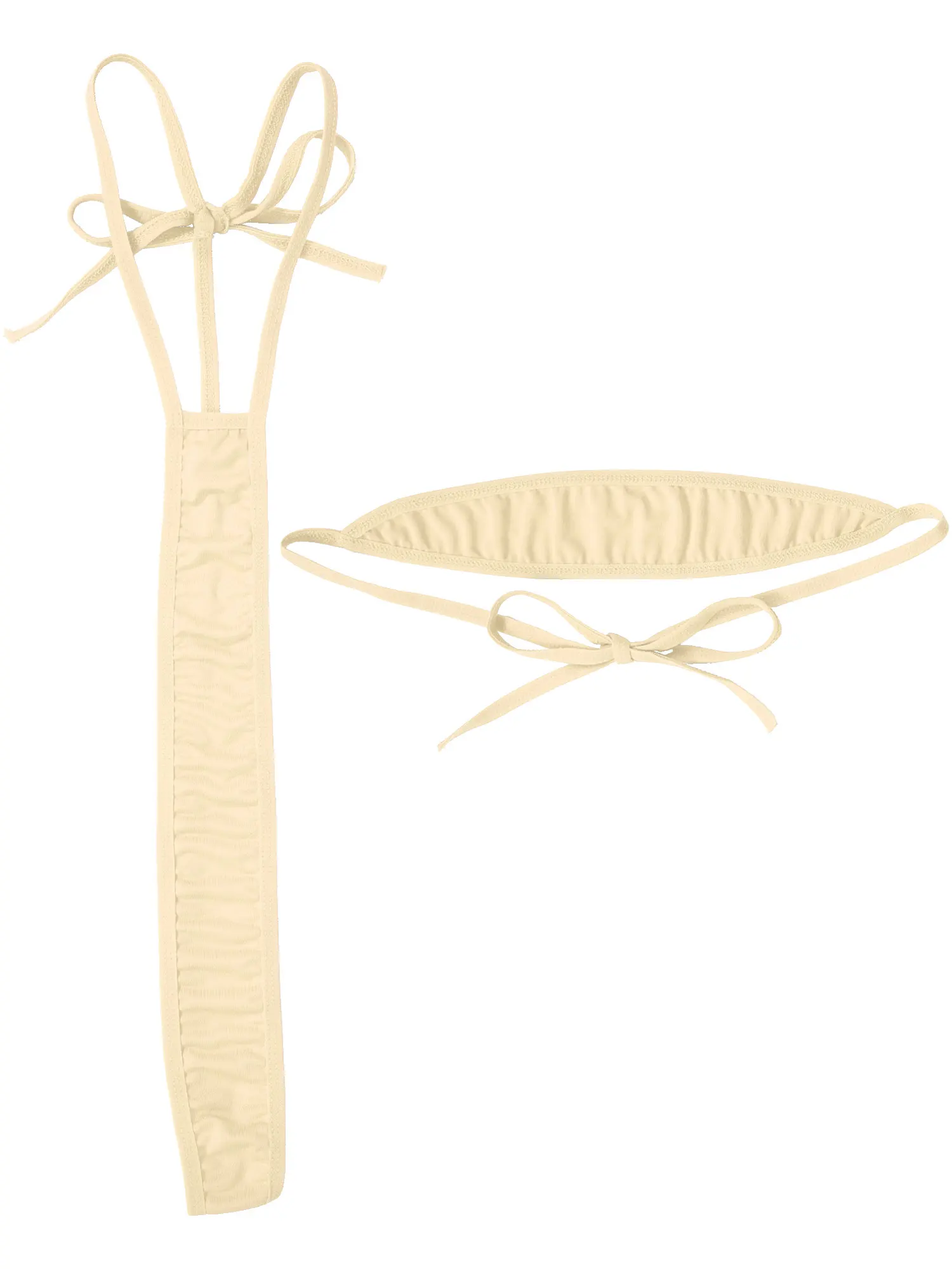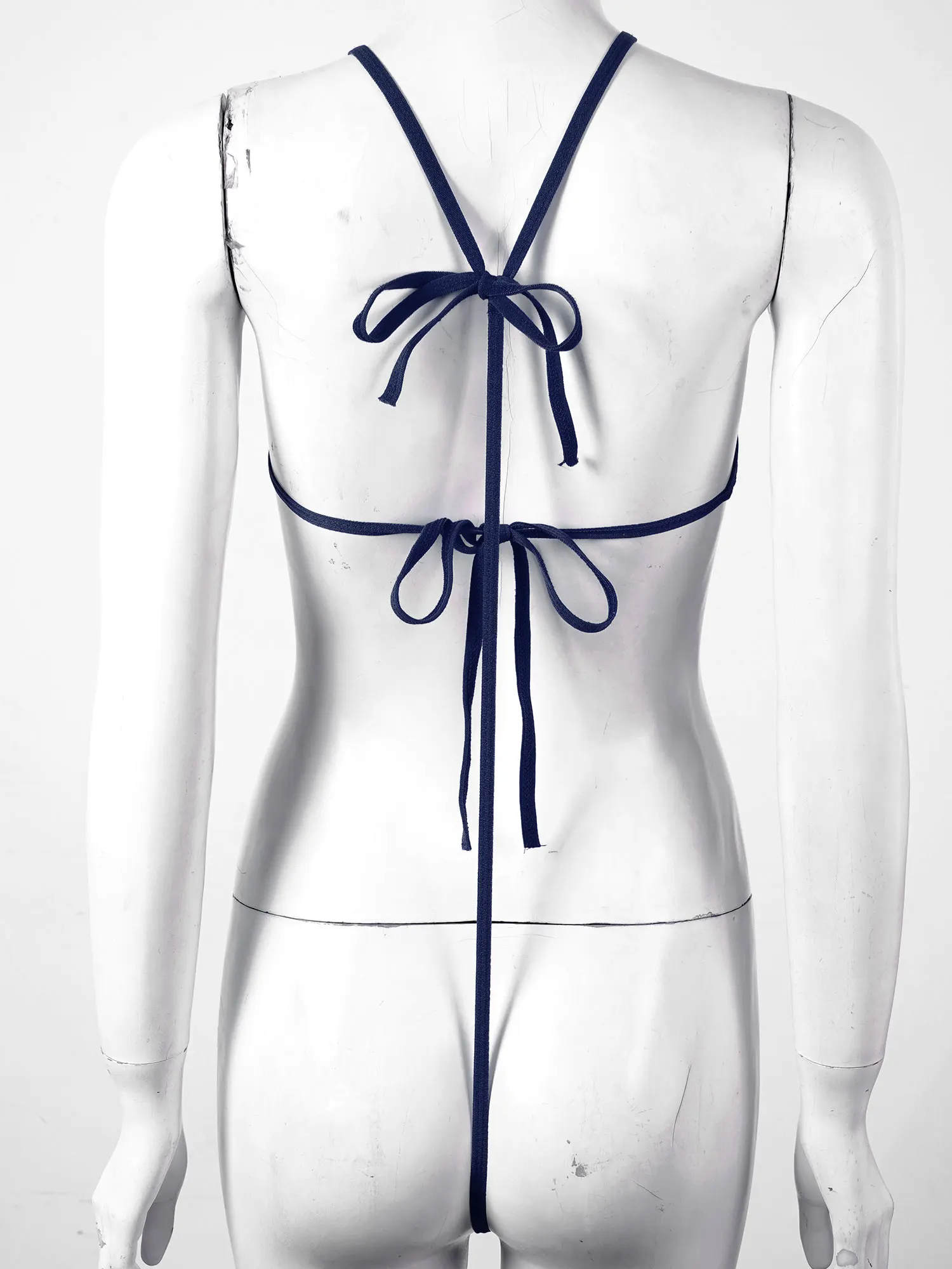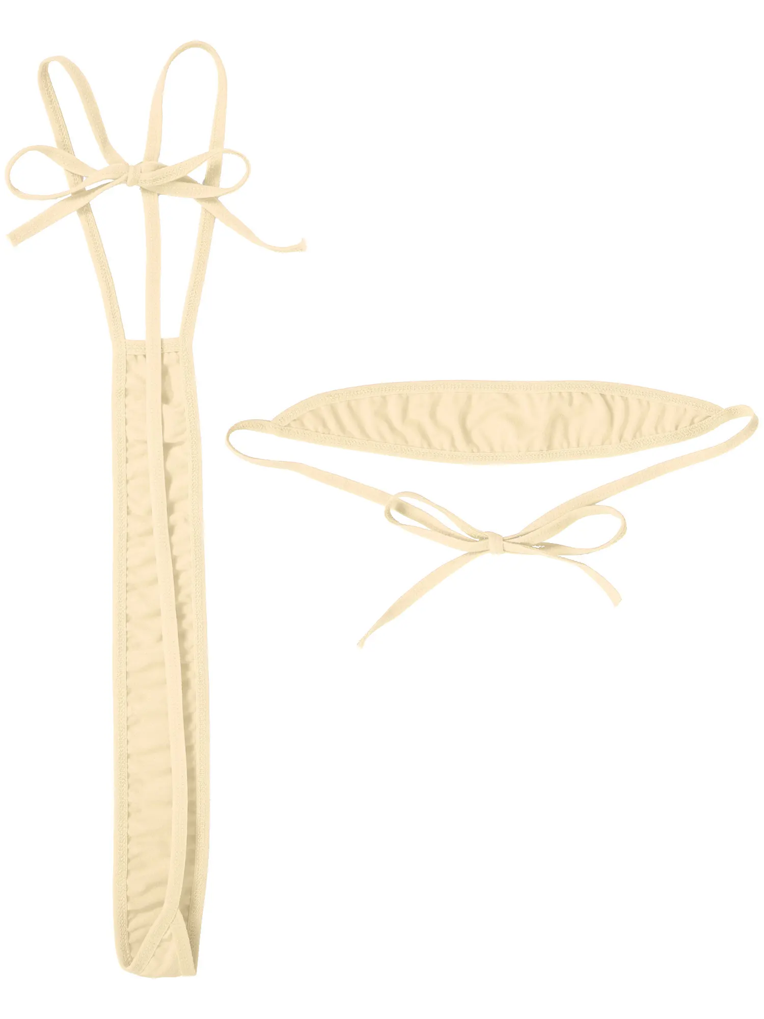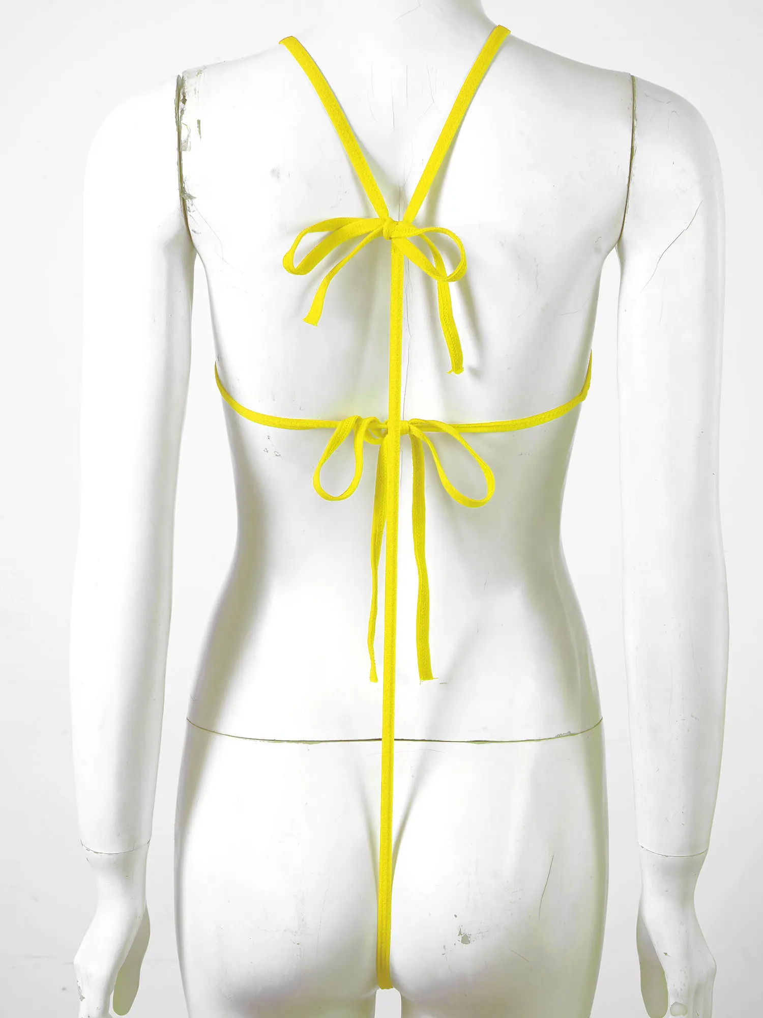 Летний женский костюм с лямкой на шее, кружевное нижнее белье, комплекты бикини, Женский однотонный микро-купальник, пляжная одежда для загара