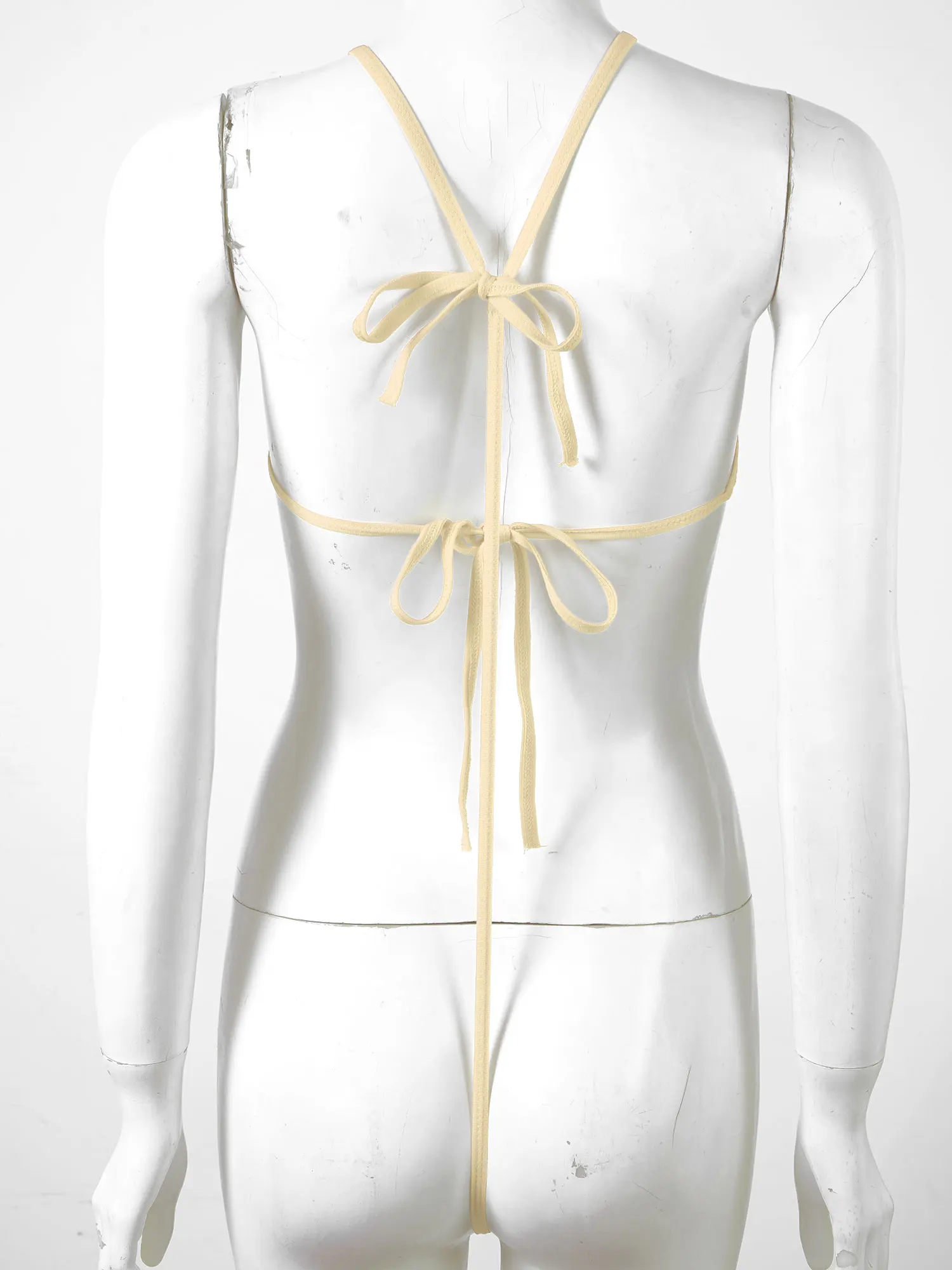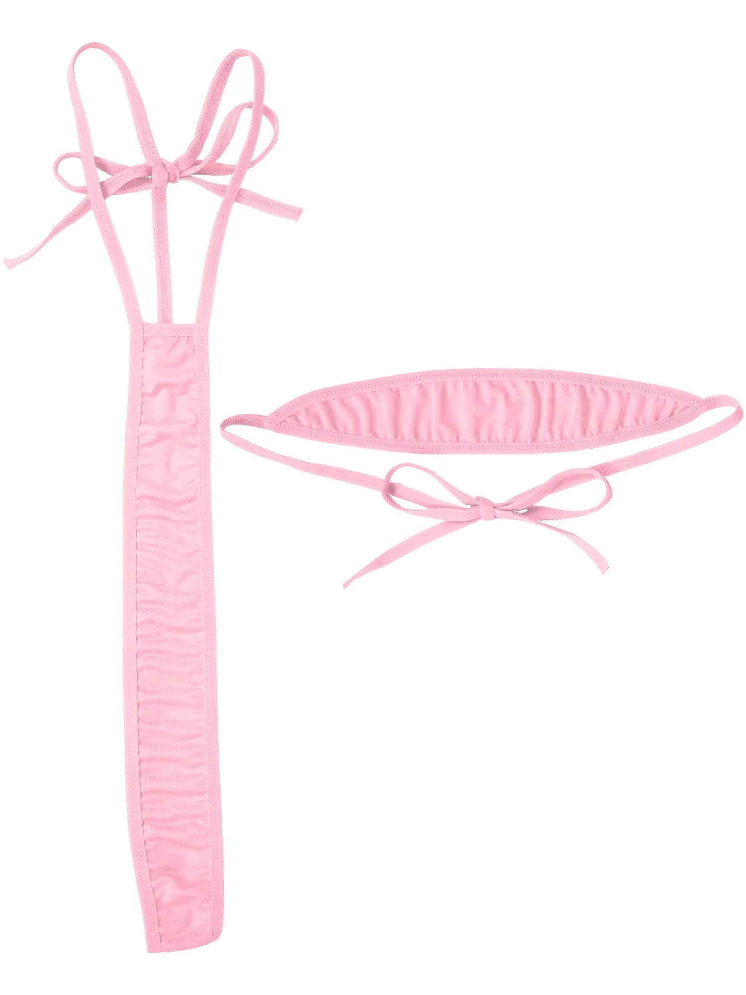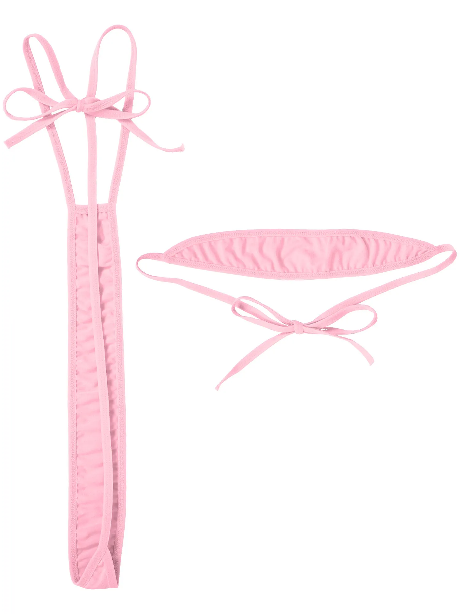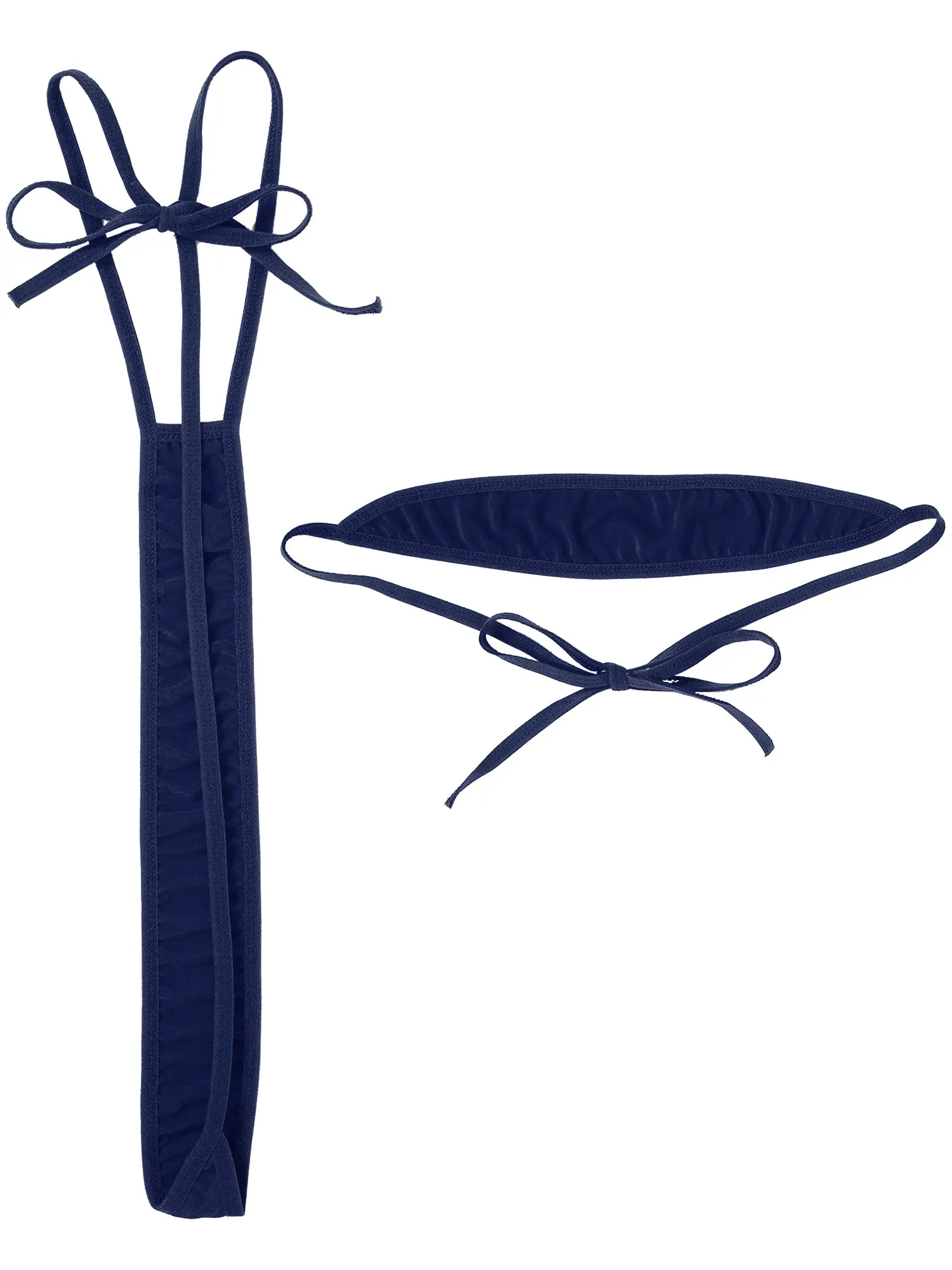 Летний женский костюм с лямкой на шее, кружевное нижнее белье, комплекты бикини, Женский однотонный микро-купальник, пляжная одежда для загара