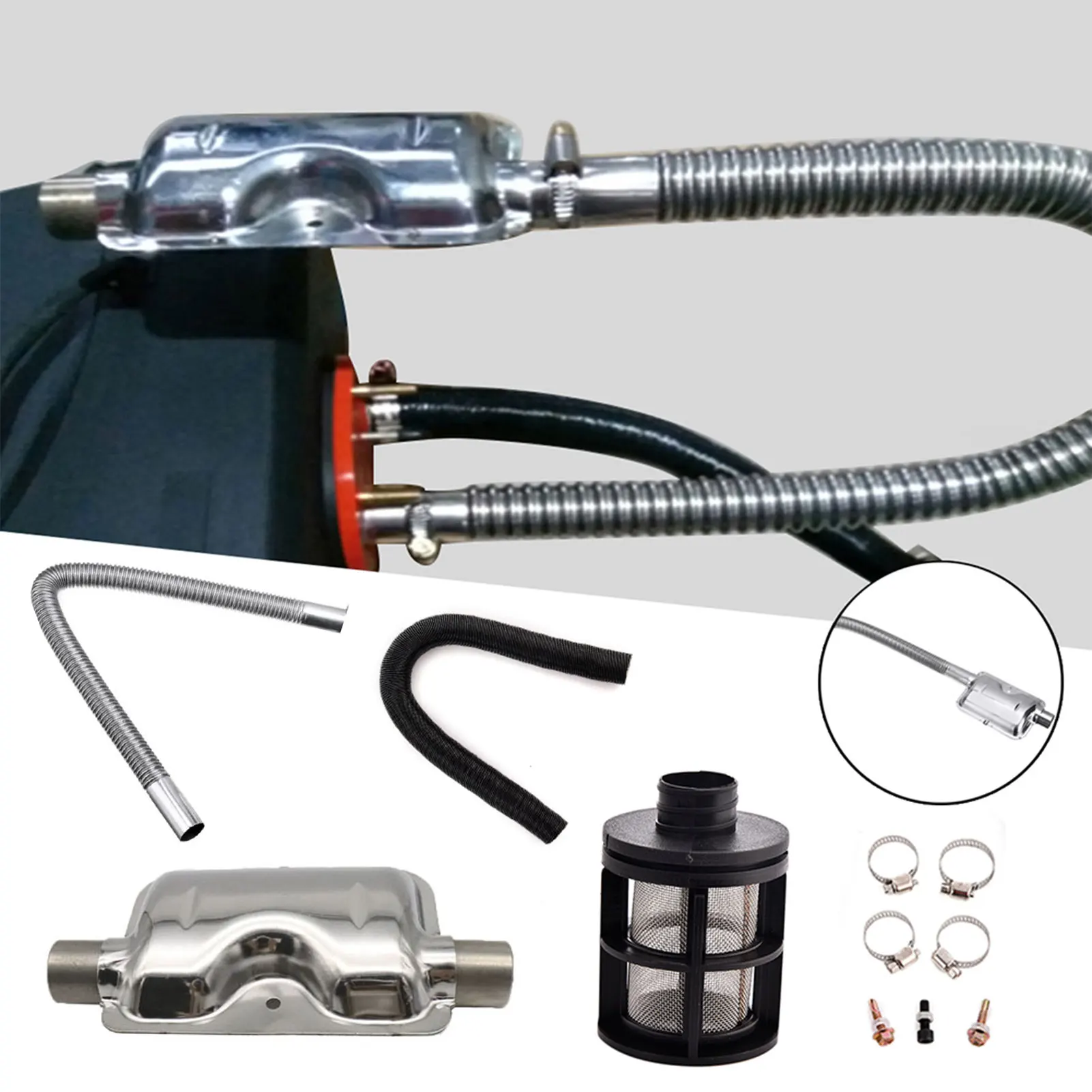 Автомобильный Воздушный стояночный отопитель Derv, глушитель из нержавеющей стали, 2 трубы для дизельного отопителя Webasto Eberspache